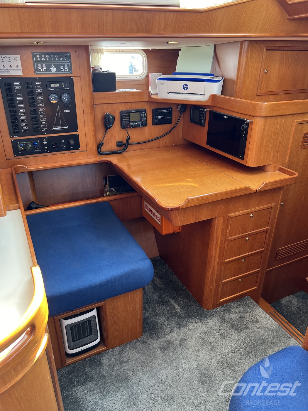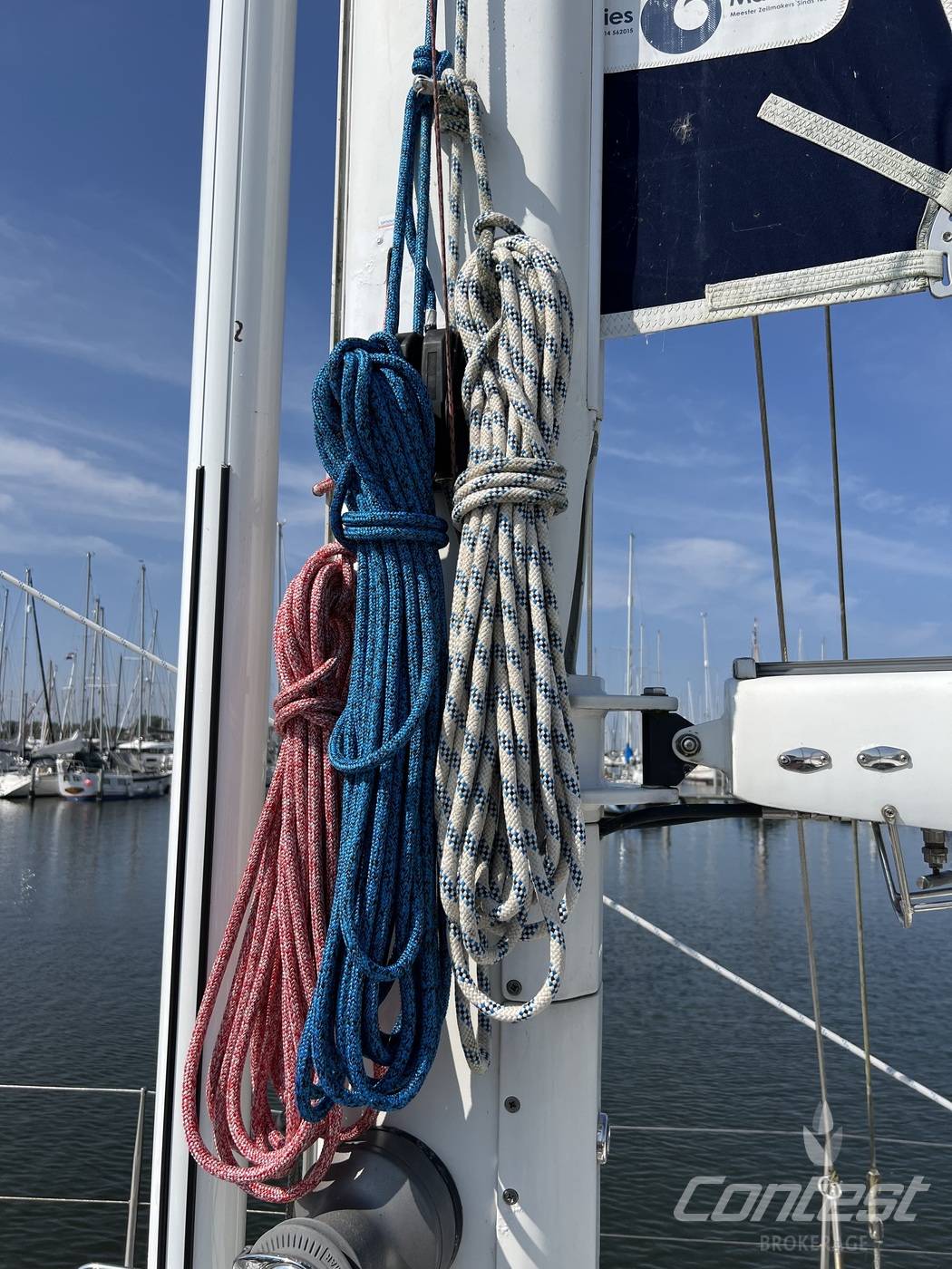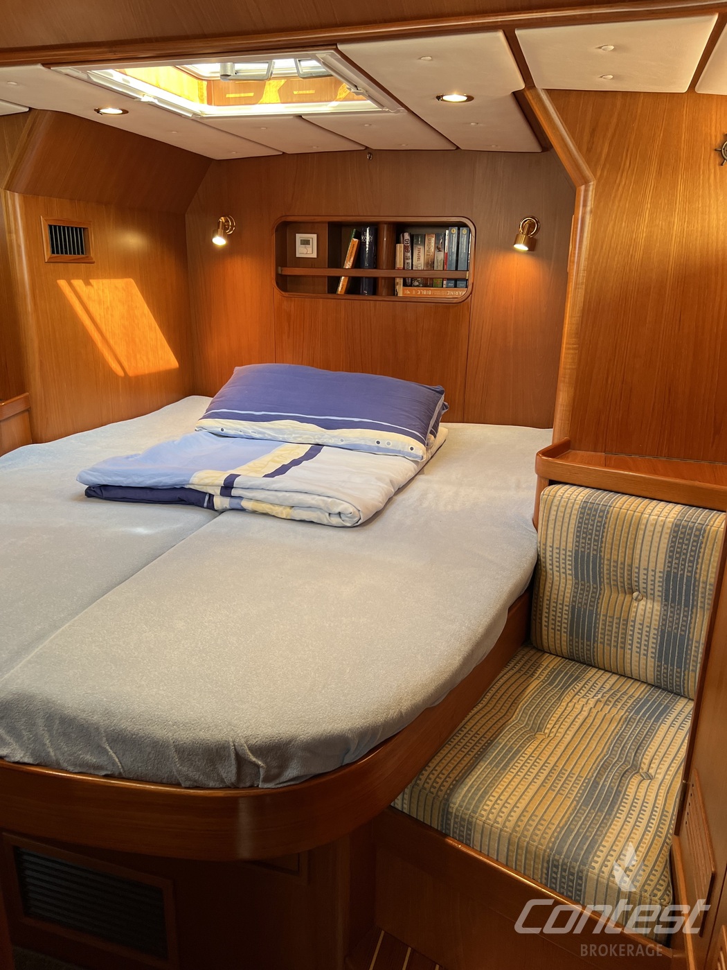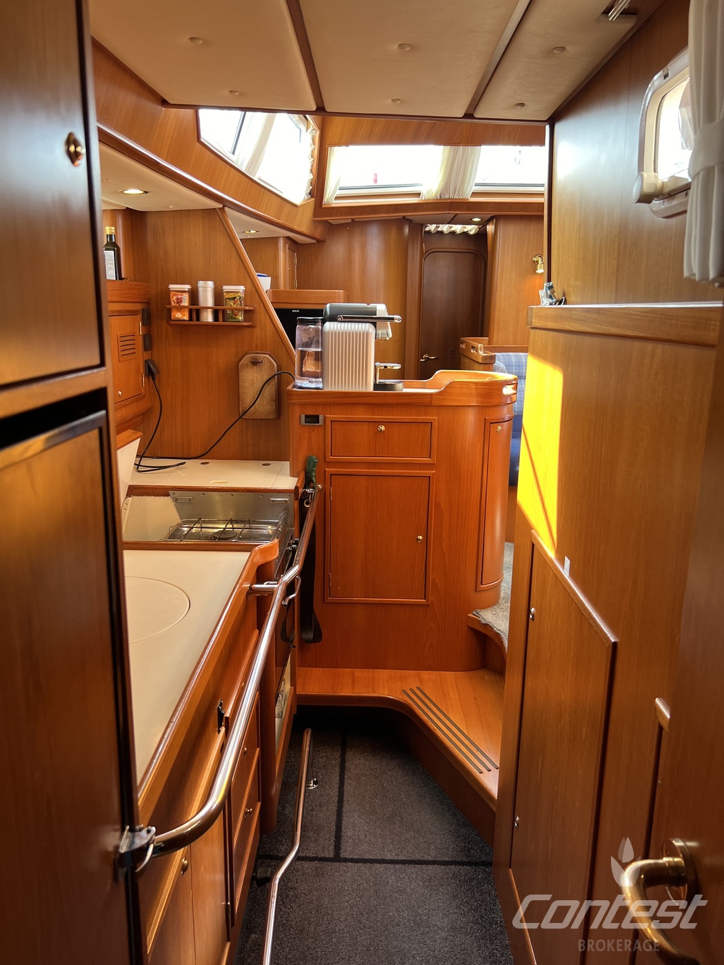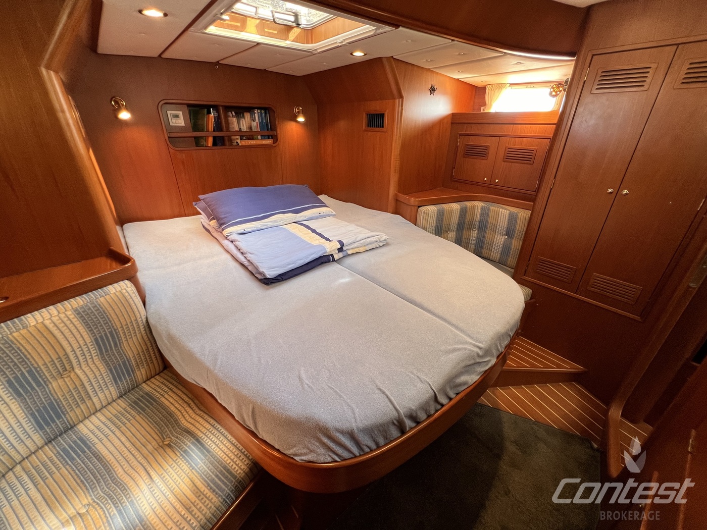 hydraulic furling sails (which includes the outhaul), generator, airconditioning, davits and much more. If you are looking for a yacht with "blue water" capacities, that can sail up to six in great comfort and which is well taken care of, "Mumeline" could be her! Please note that this brochure is preliminary. Feel invited to contact Contest Brokerage for additional information or to arrange a viewing!