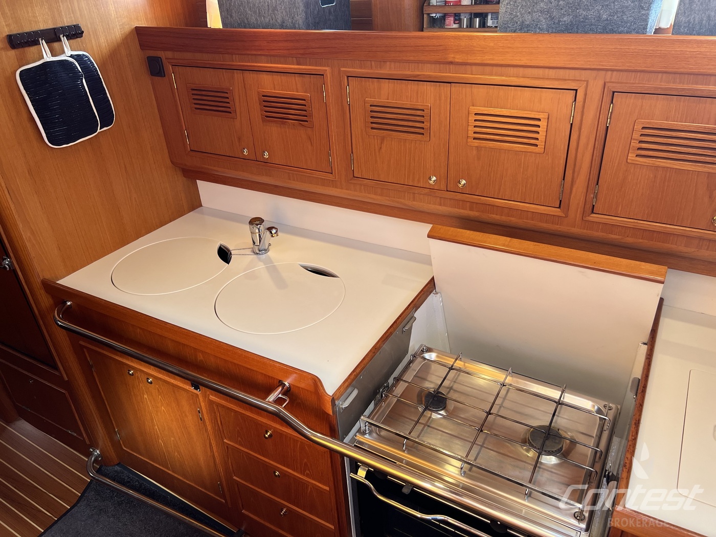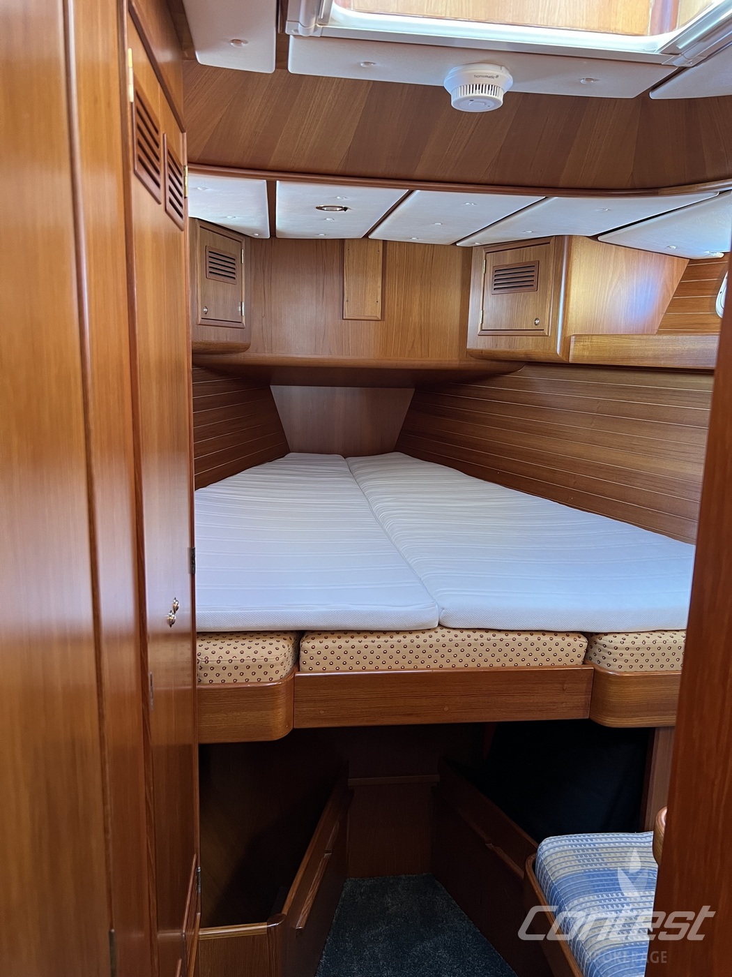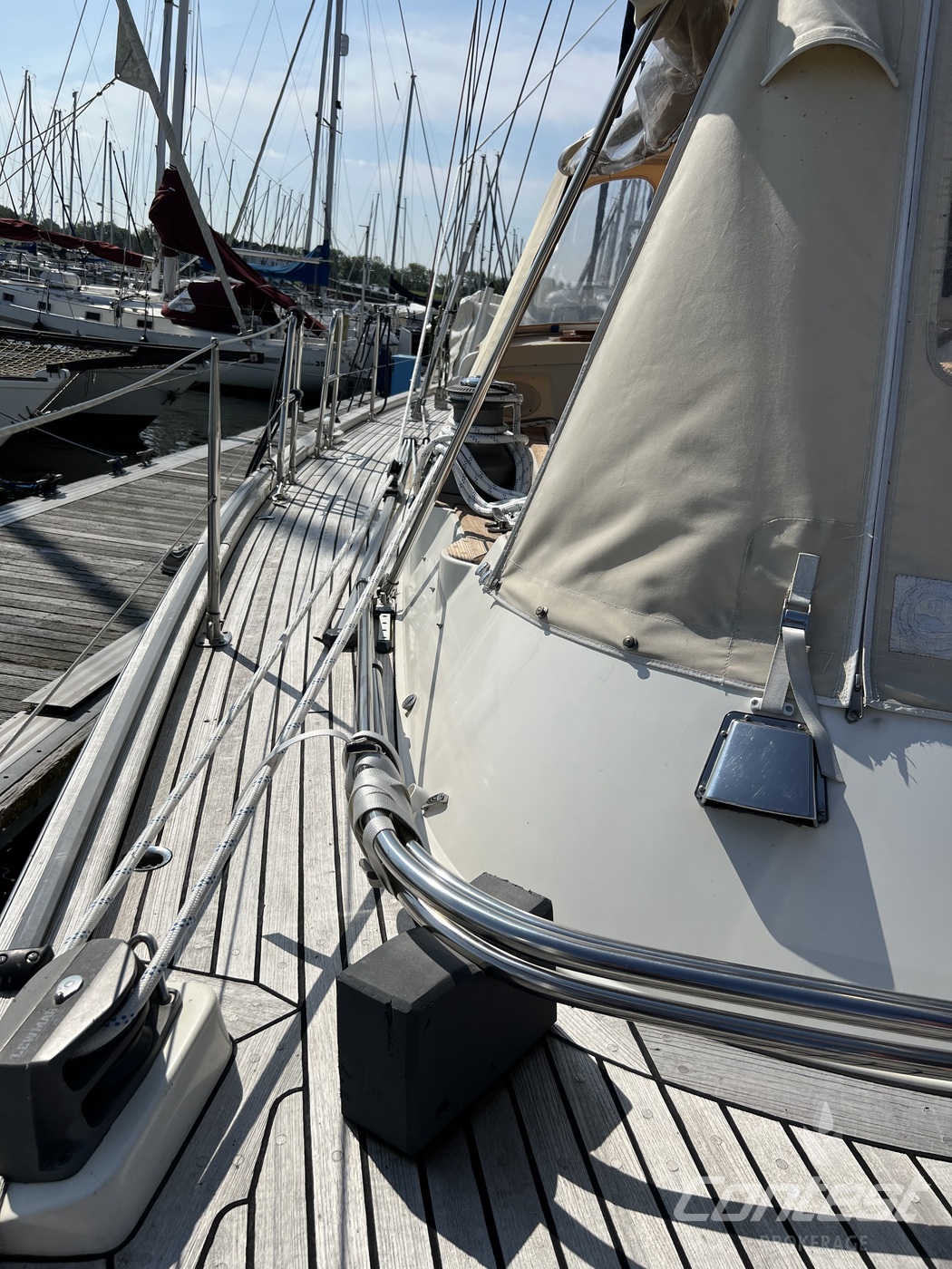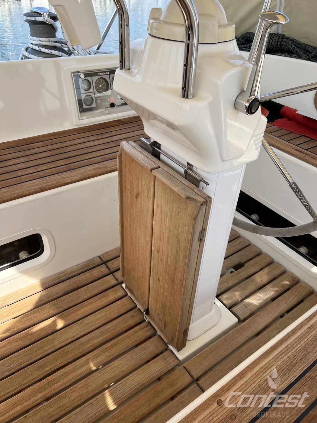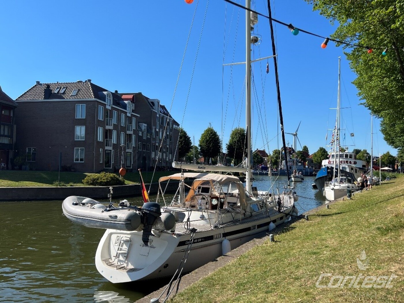 hydraulic furling sails (which includes the outhaul), generator, airconditioning, davits and much more. If you are looking for a yacht with "blue water" capacities, that can sail up to six in great comfort and which is well taken care of, "Mumeline" could be her! Please note that this brochure is preliminary. Feel invited to contact Contest Brokerage for additional information or to arrange a viewing!