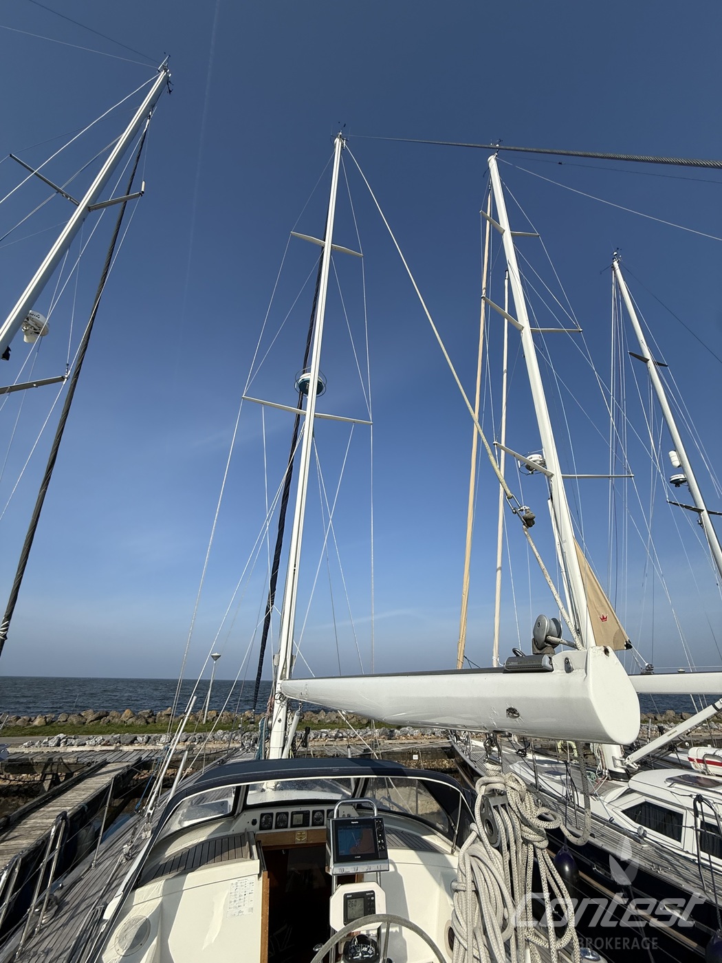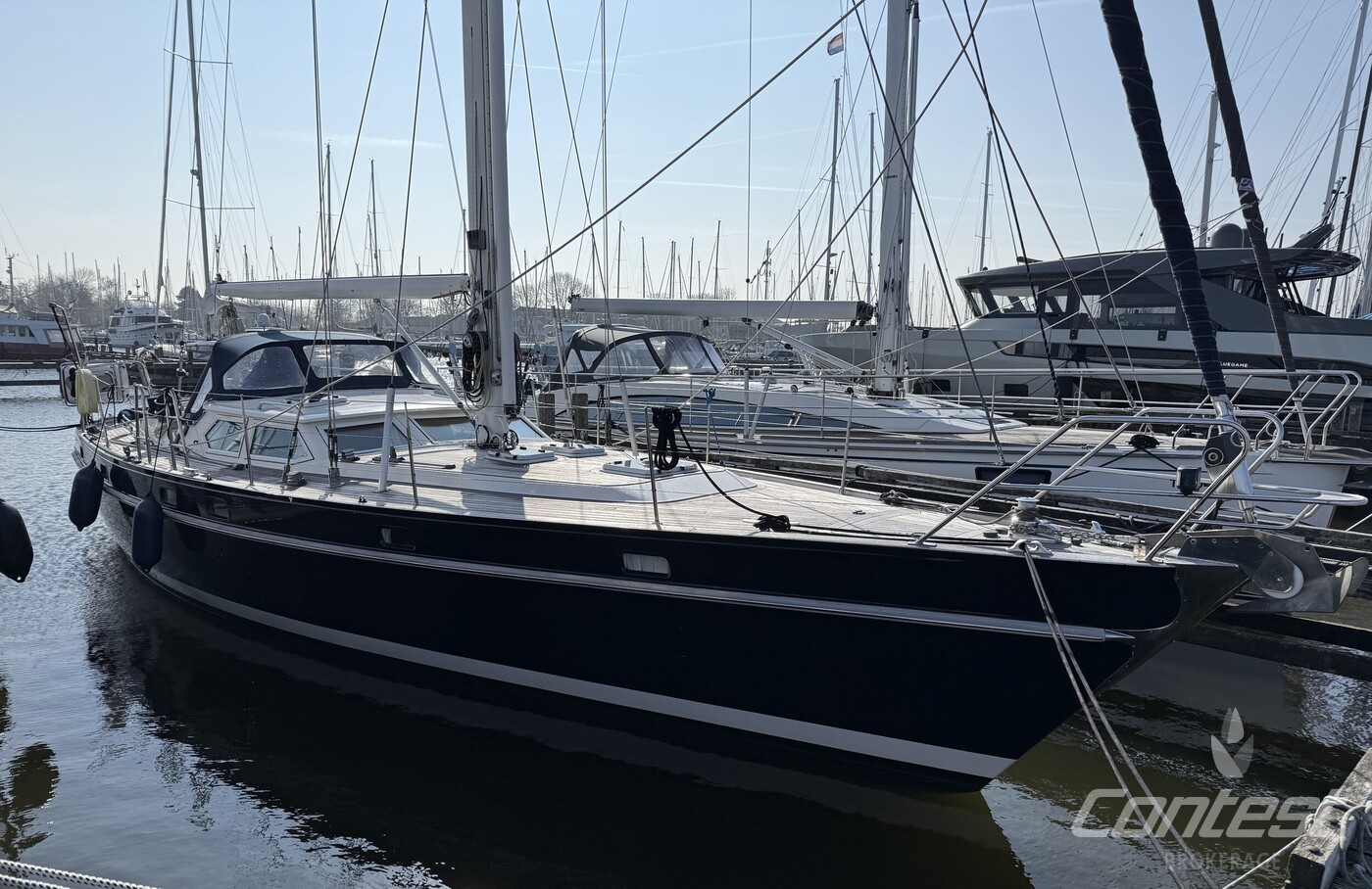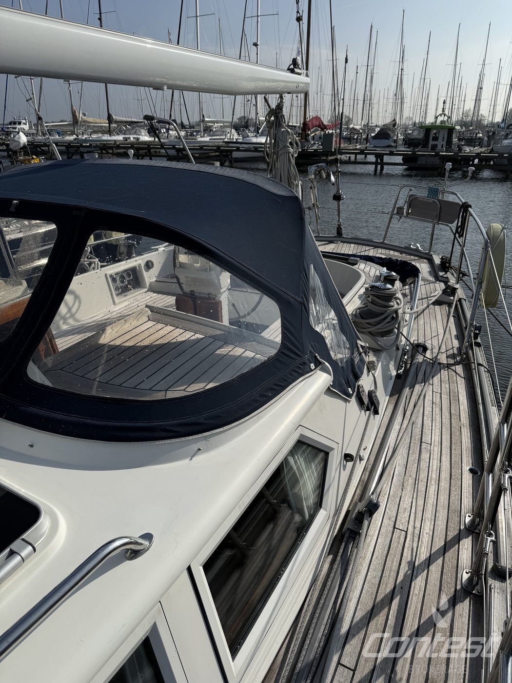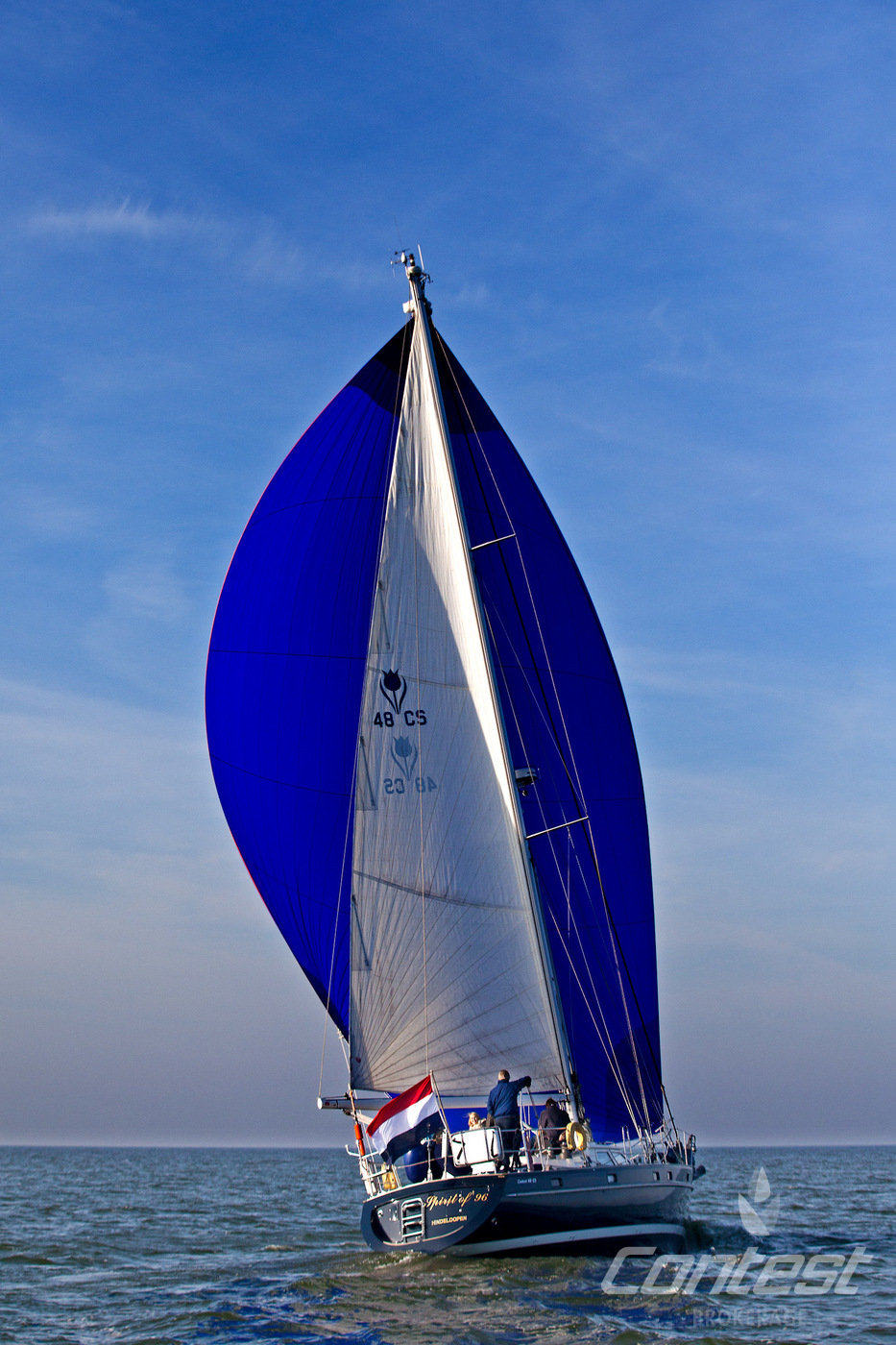 A beautifully maintained Contest 48CS now available for sale by Contest Brokerage. ?Spirit of 96? is in good condition and fully ready to embark on new adventures. She is equipped with a number of attractive features, including a raised guard rail (75 cm) for enhanced safety, 100hp Yanmar with 15hp bow thruster, large blue North Sails gennaker, outboard lift and bracket, hydraulic furlers, and more.