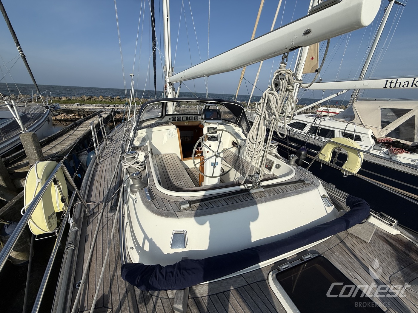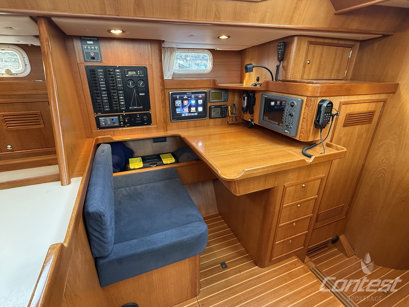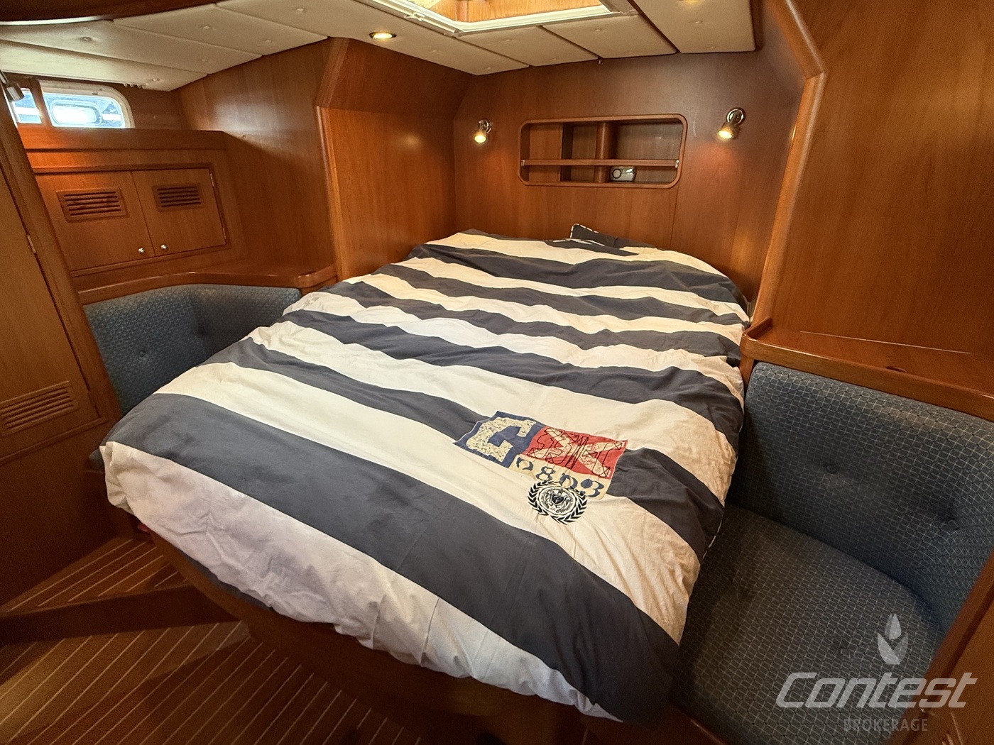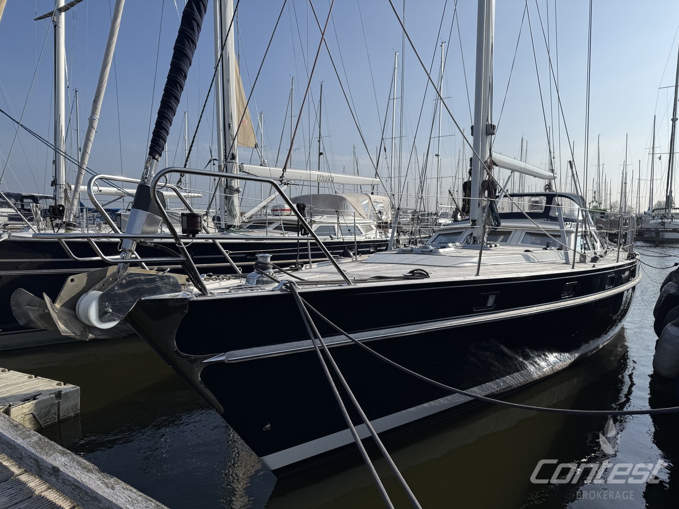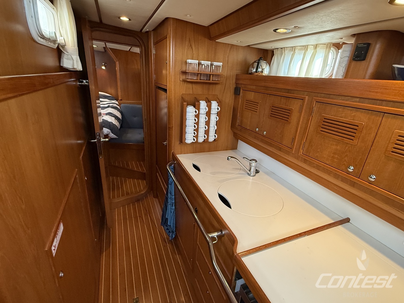 A beautifully maintained Contest 48CS now available for sale by Contest Brokerage. ?Spirit of 96? is in good condition and fully ready to embark on new adventures. She is equipped with a number of attractive features, including a raised guard rail (75 cm) for enhanced safety, 100hp Yanmar with 15hp bow thruster, large blue North Sails gennaker, outboard lift and bracket, hydraulic furlers, and more.