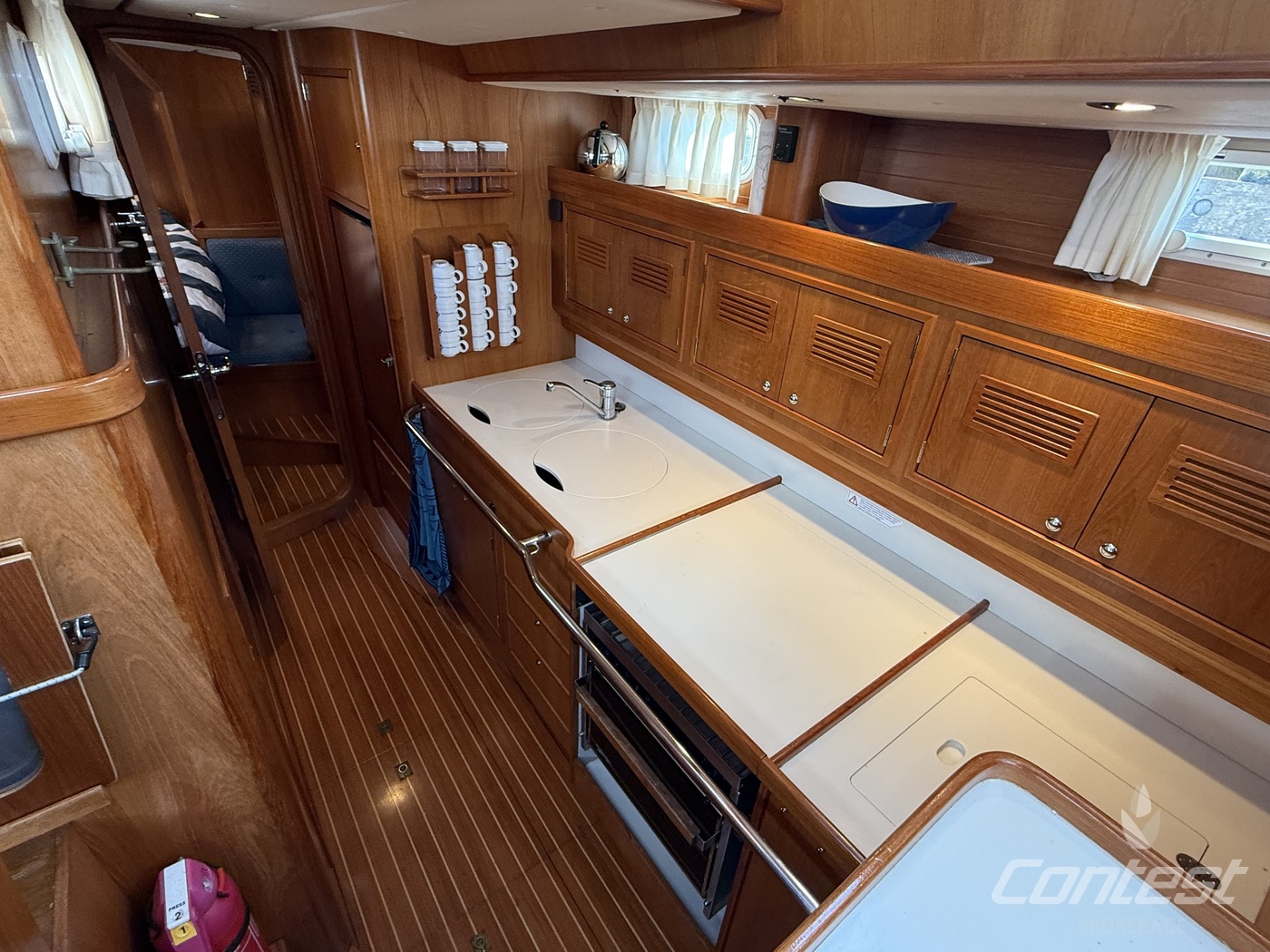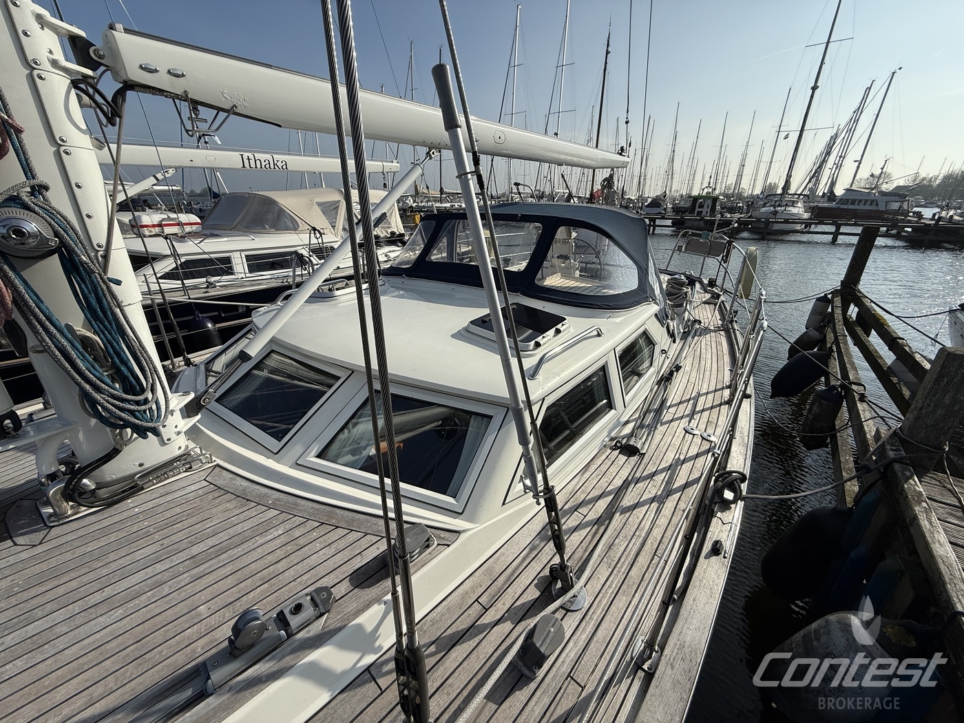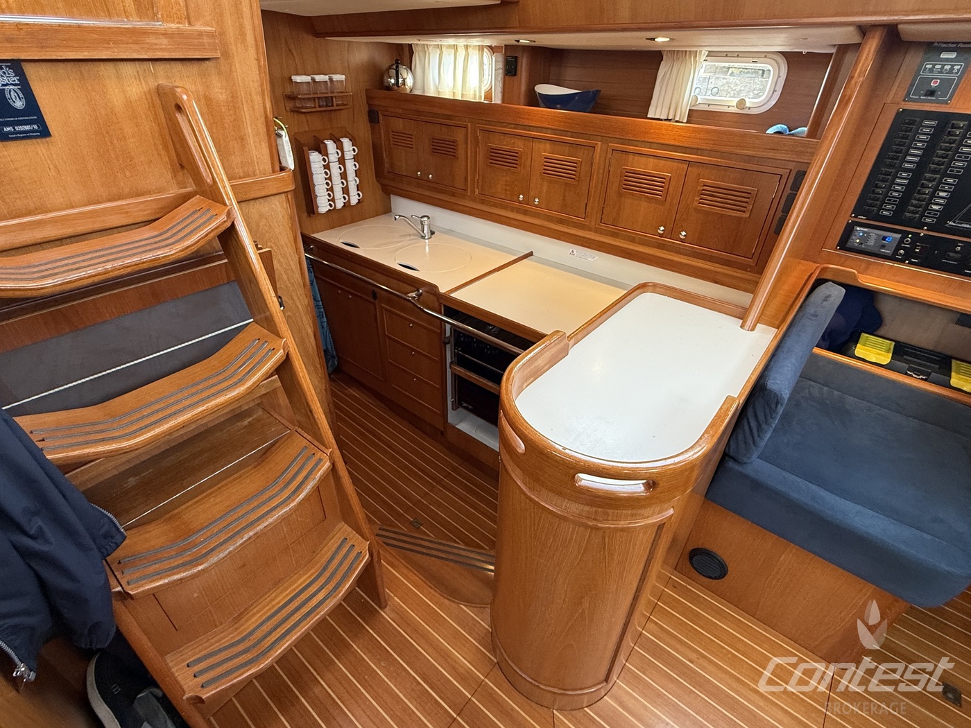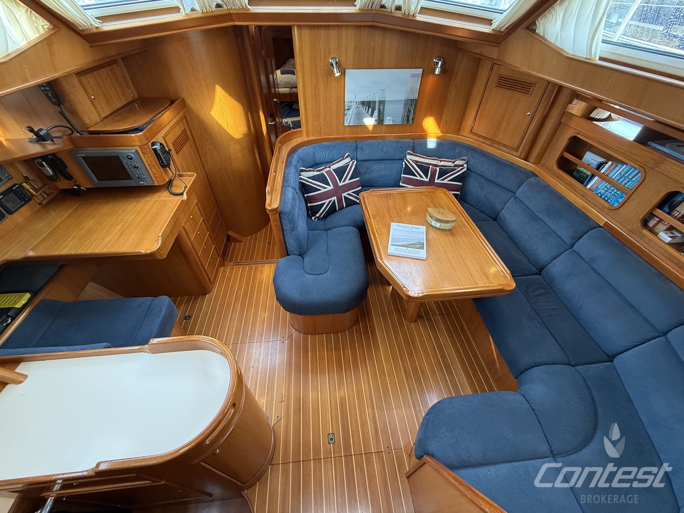 A beautifully maintained Contest 48CS now available for sale by Contest Brokerage. ?Spirit of 96? is in good condition and fully ready to embark on new adventures. She is equipped with a number of attractive features, including a raised guard rail (75 cm) for enhanced safety, 100hp Yanmar with 15hp bow thruster, large blue North Sails gennaker, outboard lift and bracket, hydraulic furlers, and more.