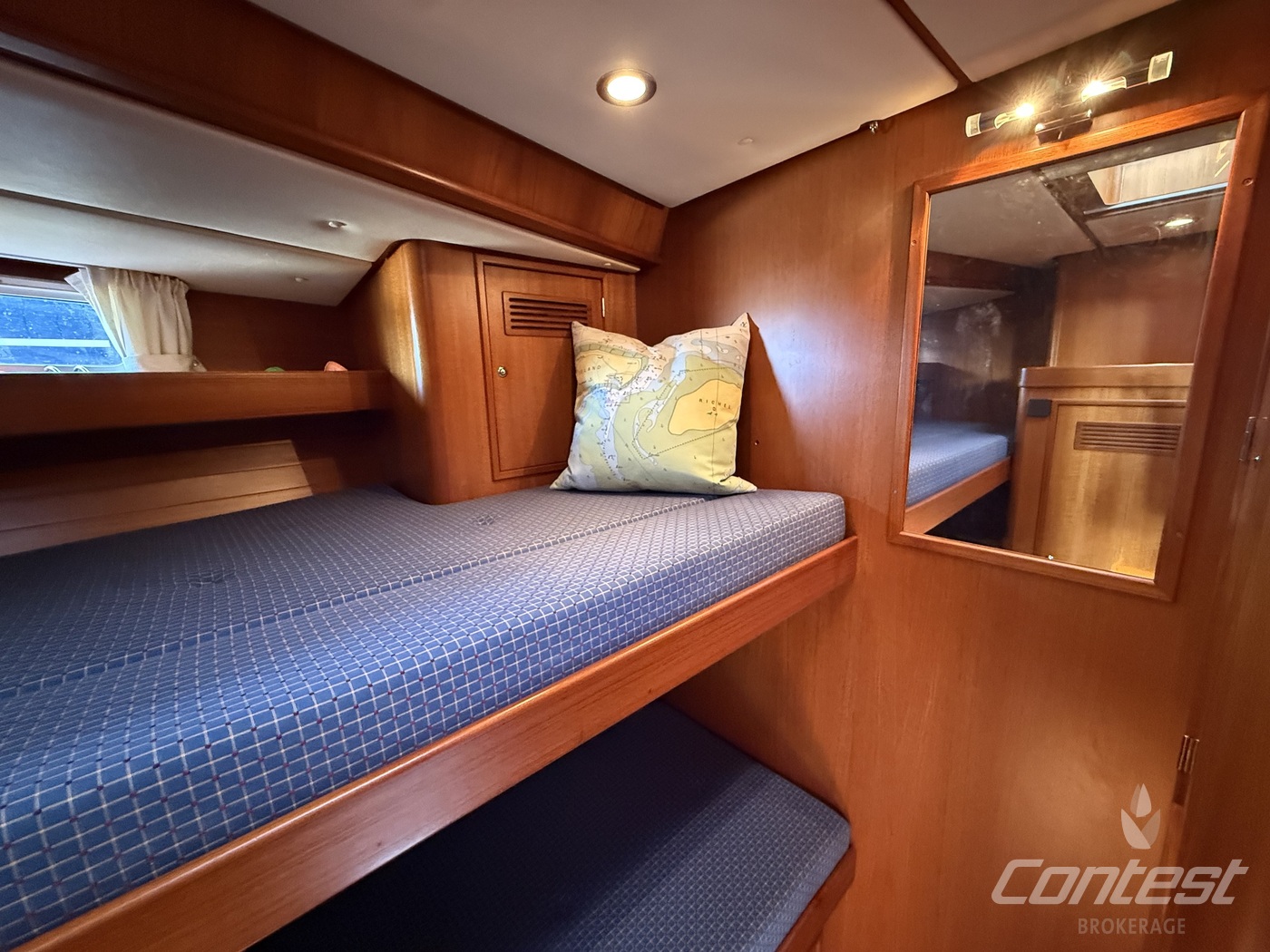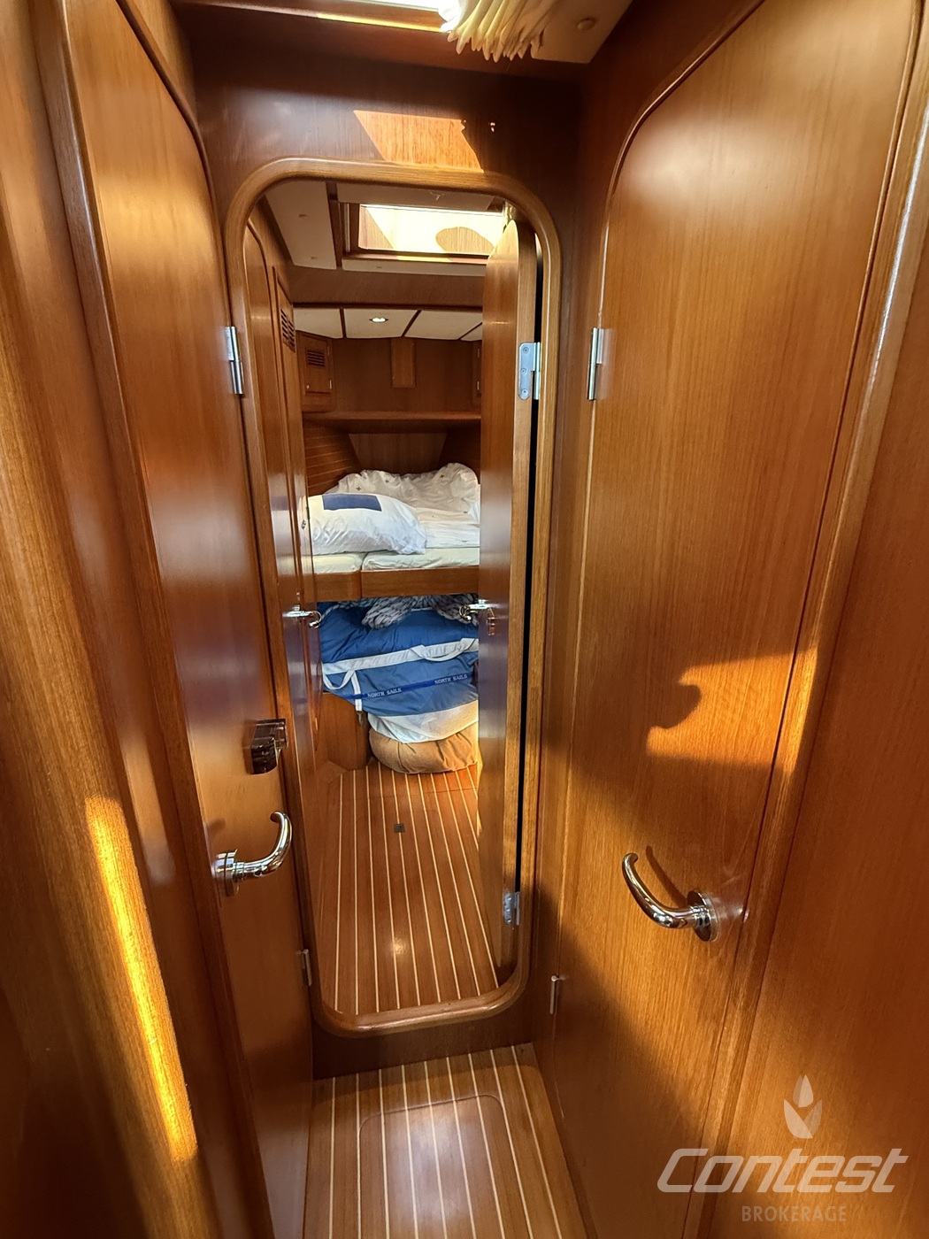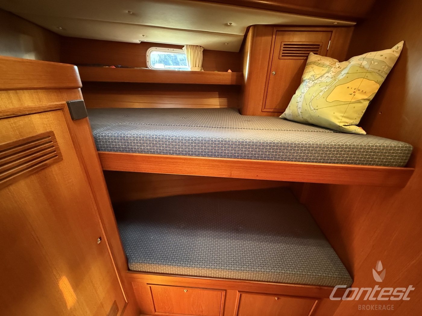 Cabins3 hutten indeling met grote eigenaarshut in het achterschip en gastenhut in de boeg evenals een stapelbed aan stuurboord
