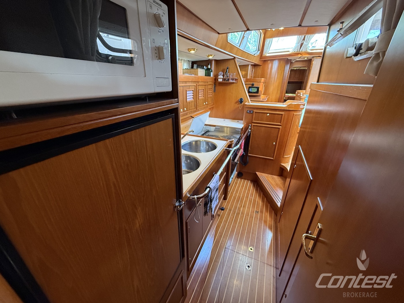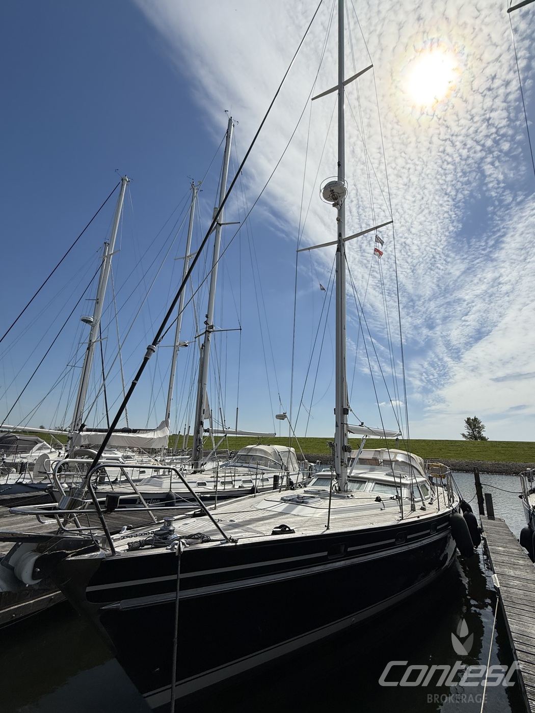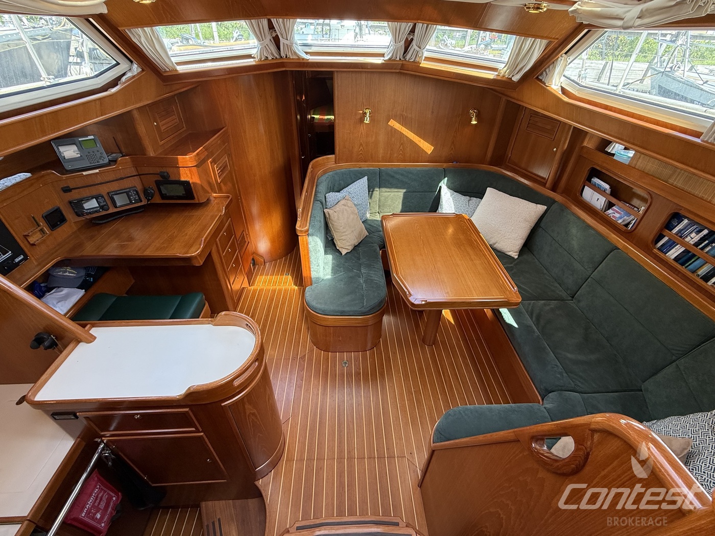 Jenny 3, a well-cared-for Contest 48CS with a classic dark green hull. Designed by George Nissen and Dick Zaal, and built in 2000 by Conyplex under Lloyd?s certification, she is a capable and comfortable blue water cruiser.
