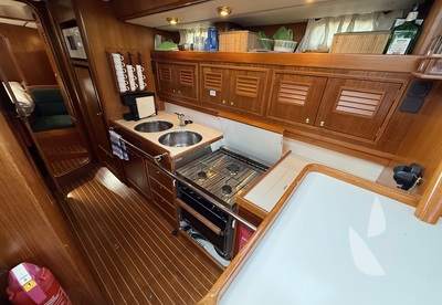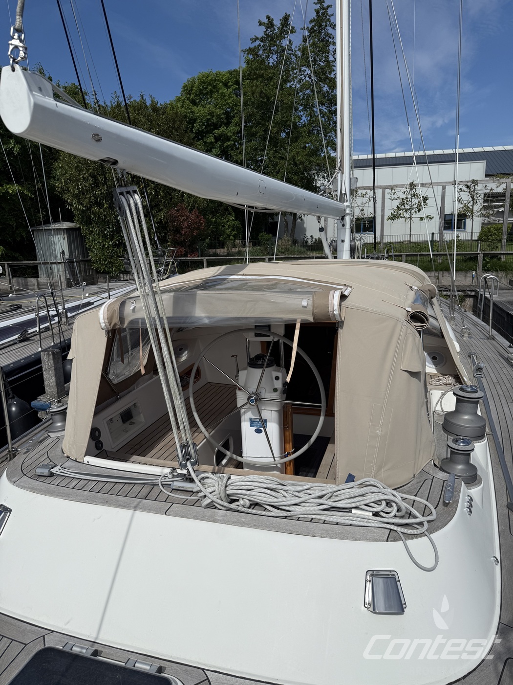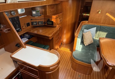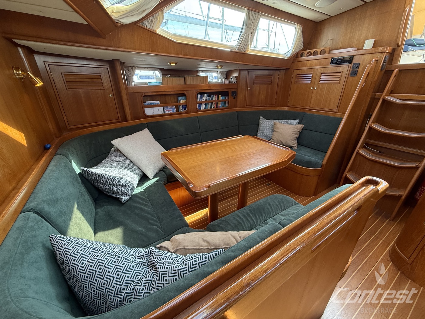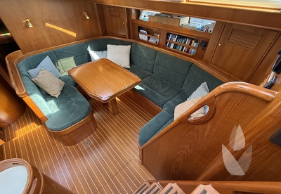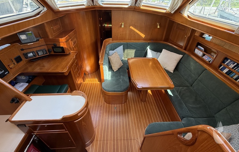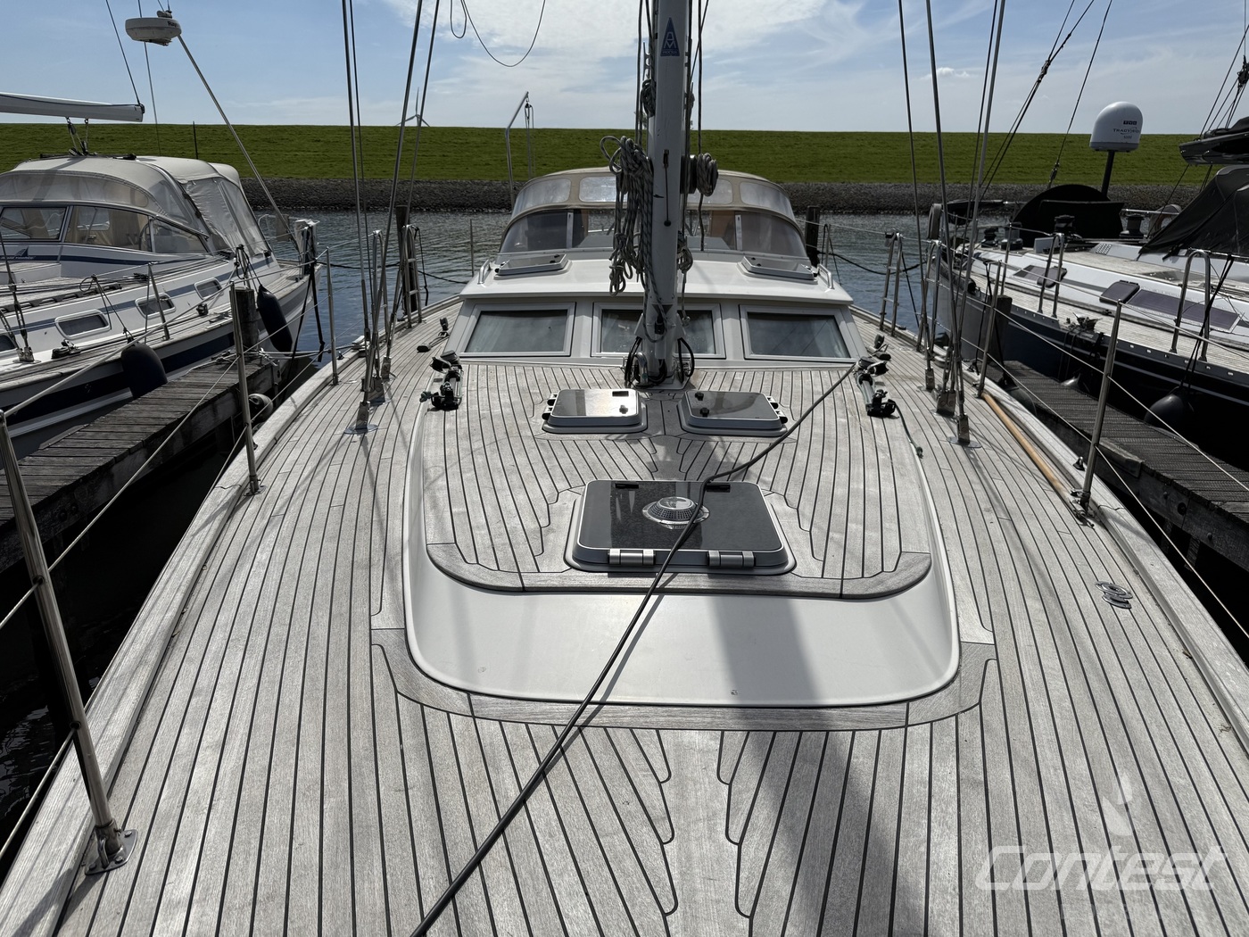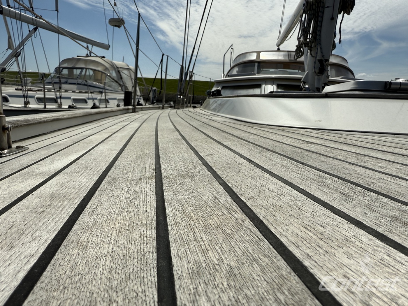 In 2021 she was fitted with a new teak deck and recent set of sails, adding to her already thoughtful specification, which includes a 135 hp Perkins engine, Maxprop feathering propeller, hydraulic furling mainsail, electric genoa winches, gennaker, solar power and electric toilets.