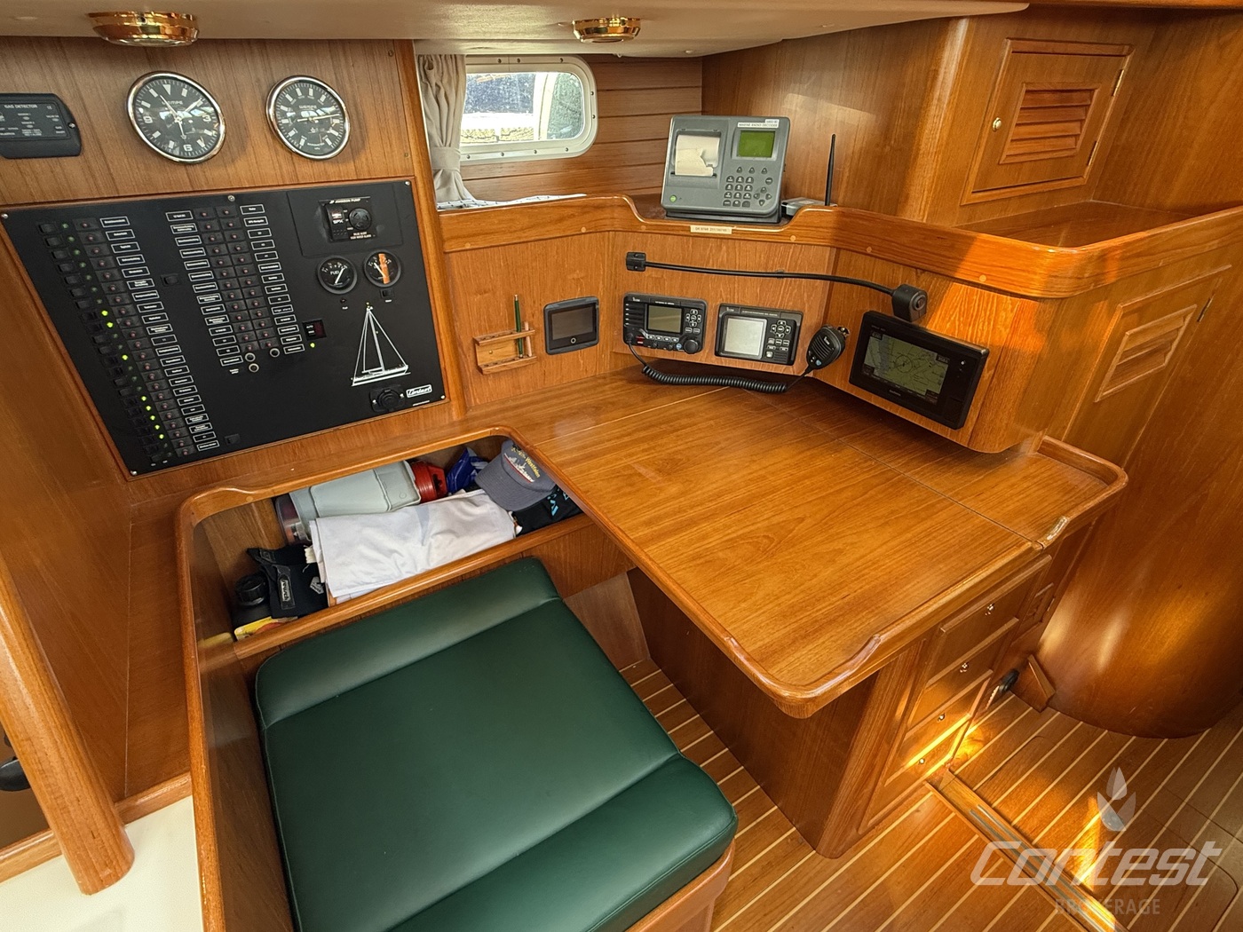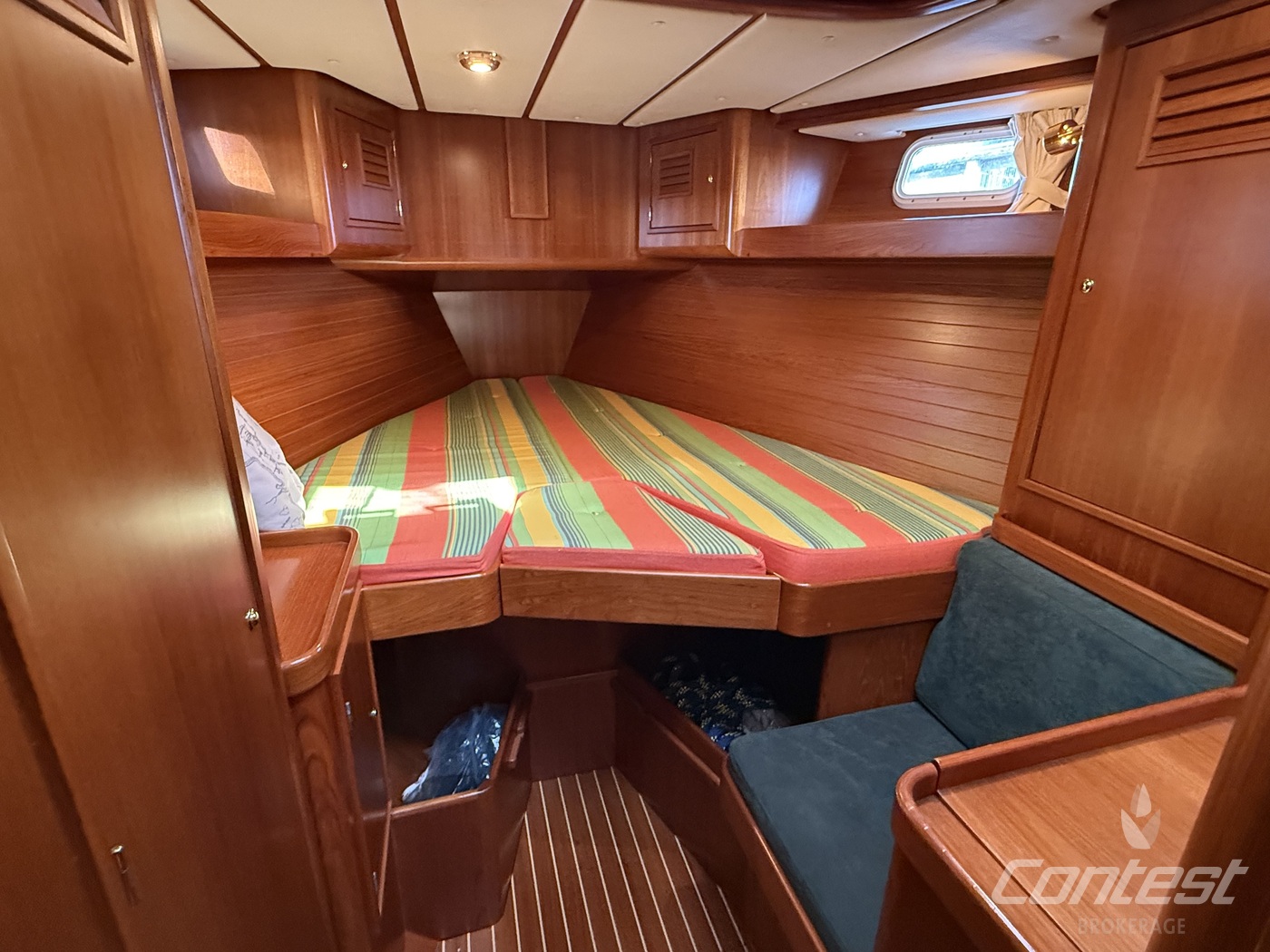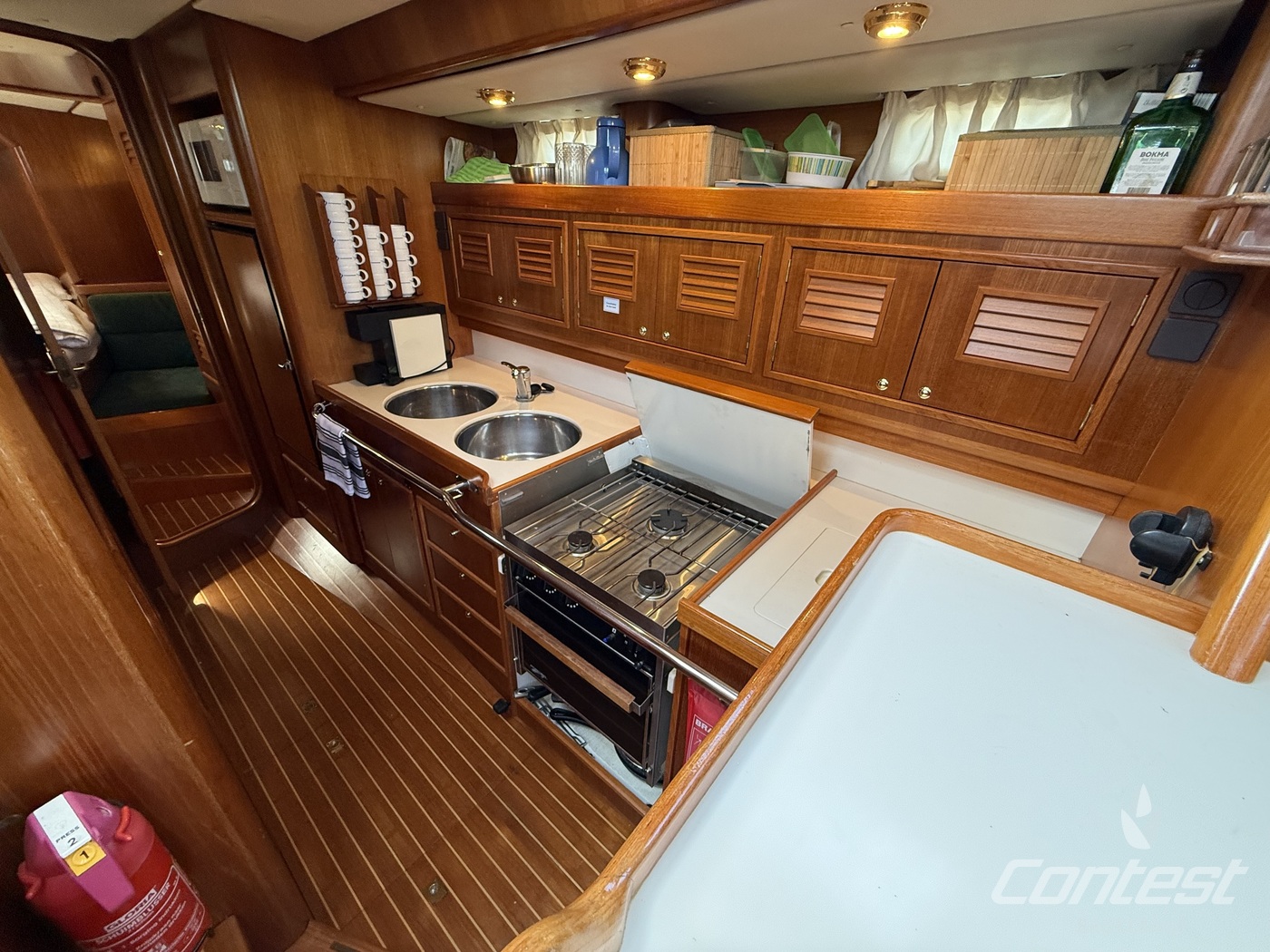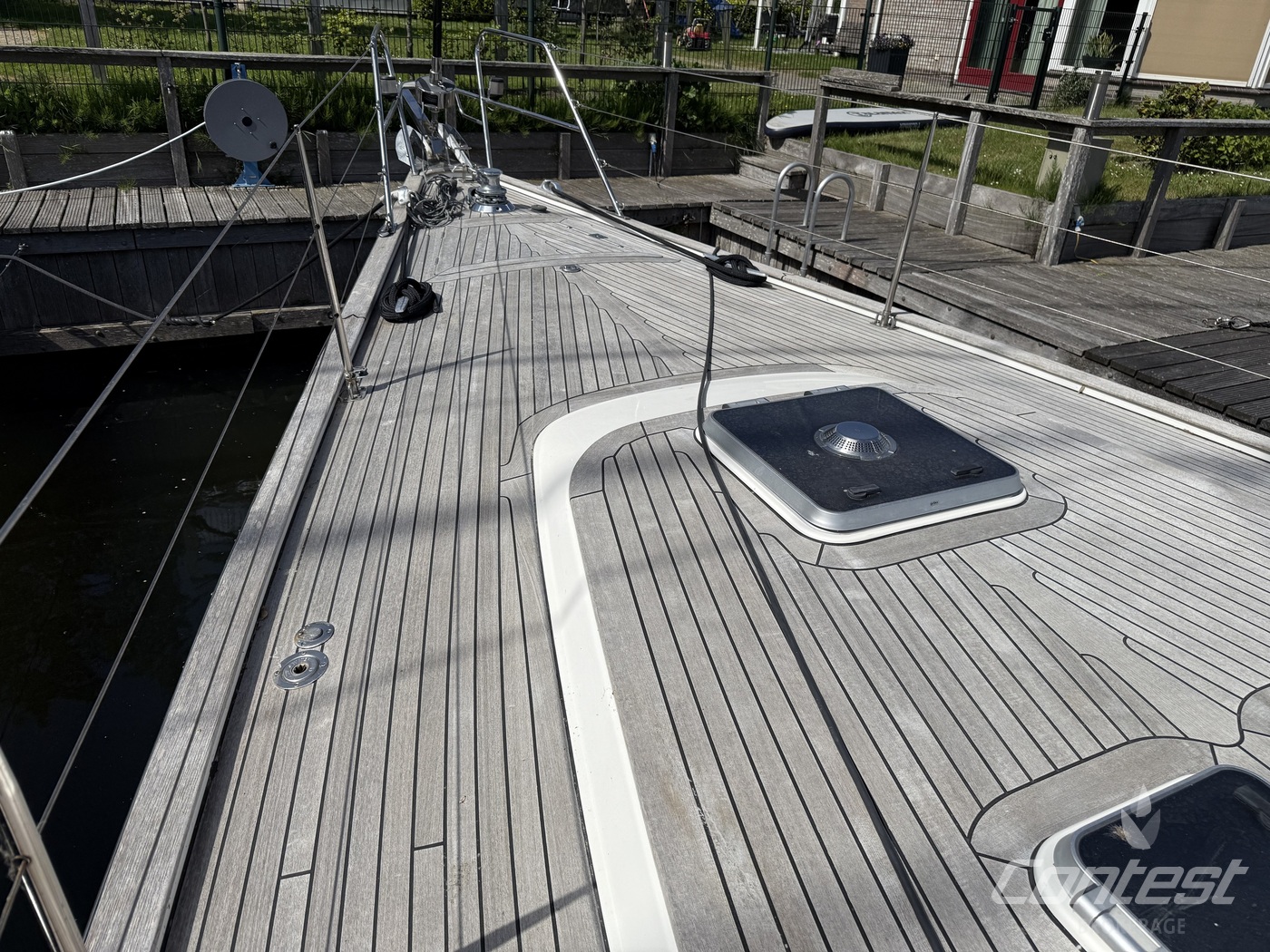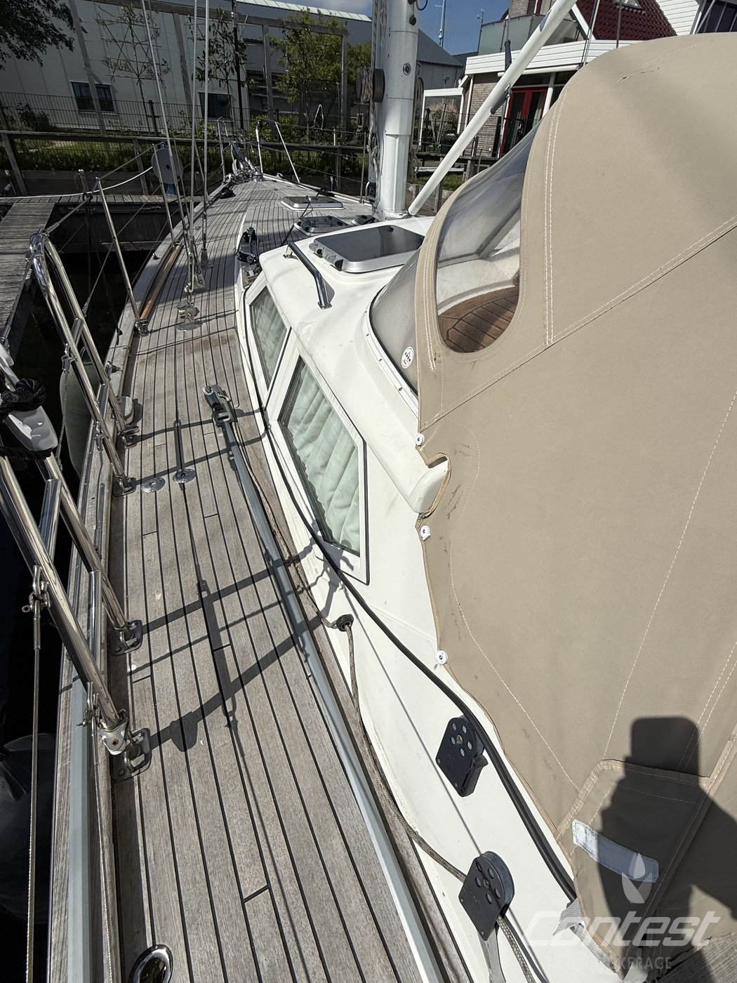 In 2021 she was fitted with a new teak deck and recent set of sails, adding to her already thoughtful specification, which includes a 135 hp Perkins engine, Maxprop feathering propeller, hydraulic furling mainsail, electric genoa winches, gennaker, solar power and electric toilets.