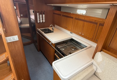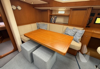 Her spacious interior, designed by Birgit Schnaase, and strong vacuum-infused hull by Georg Nissen offer both comfort and performance. With four electric winches, easy sail handling, and renewed navigation equipment she?s a joy to sail. The silent generator provides full electrical independence on board.