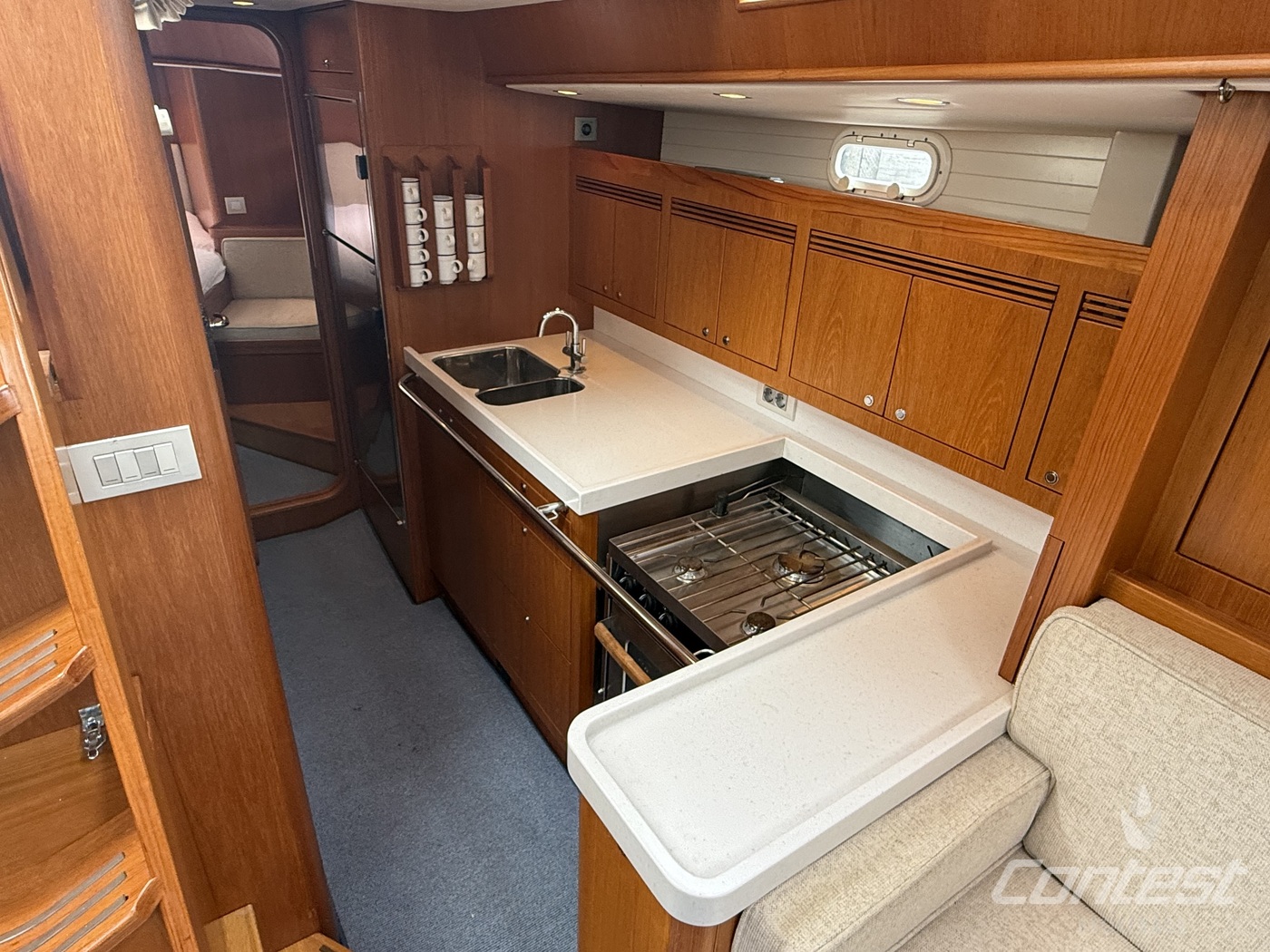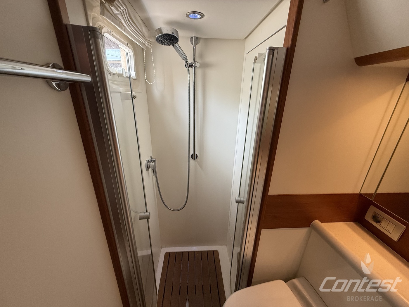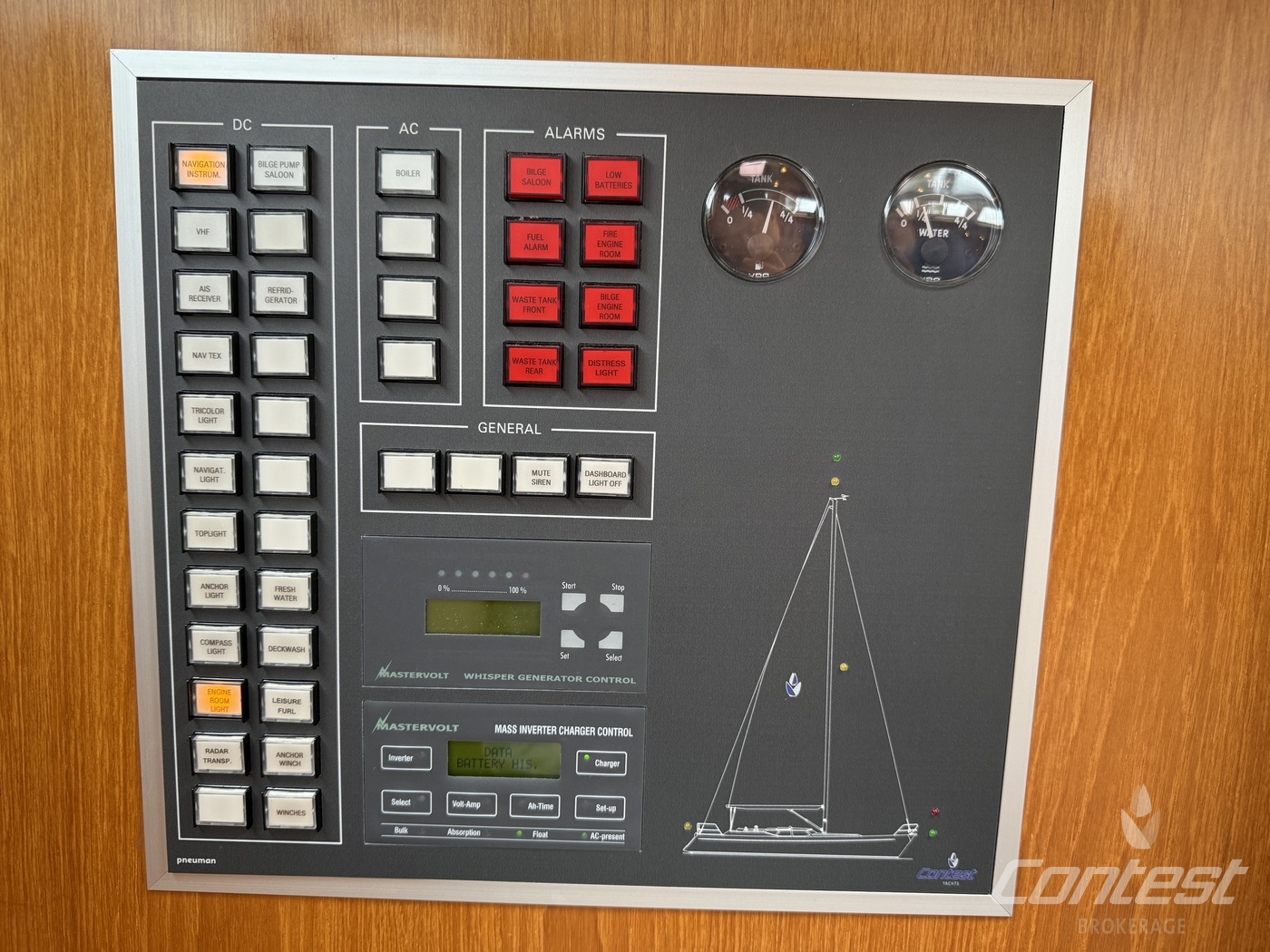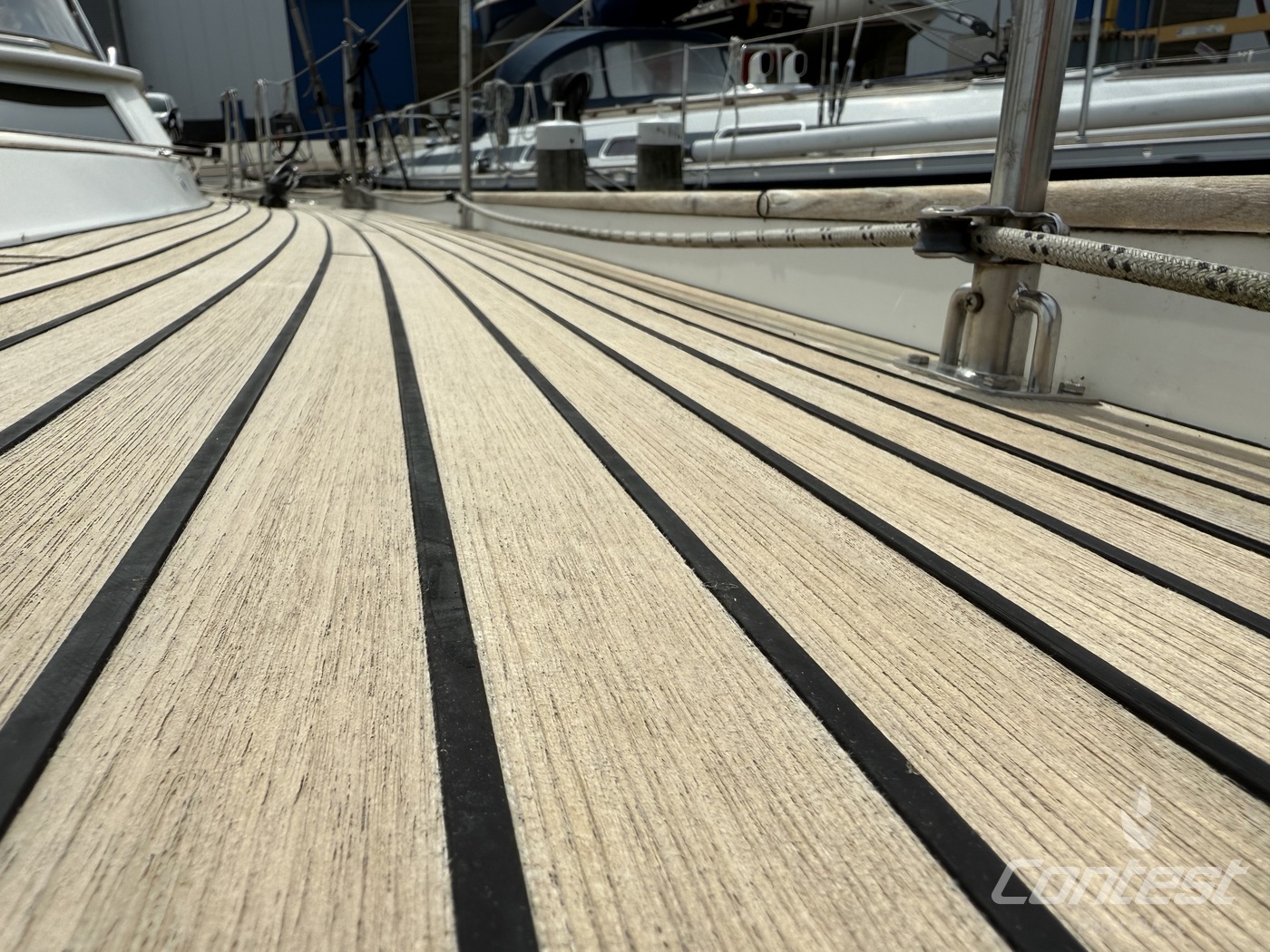 Built to Contest Yachts high standards, she features an in-boom furling mainsail, teak interior with light grey upholstery, teak decks, generator, and carpeting throughout.