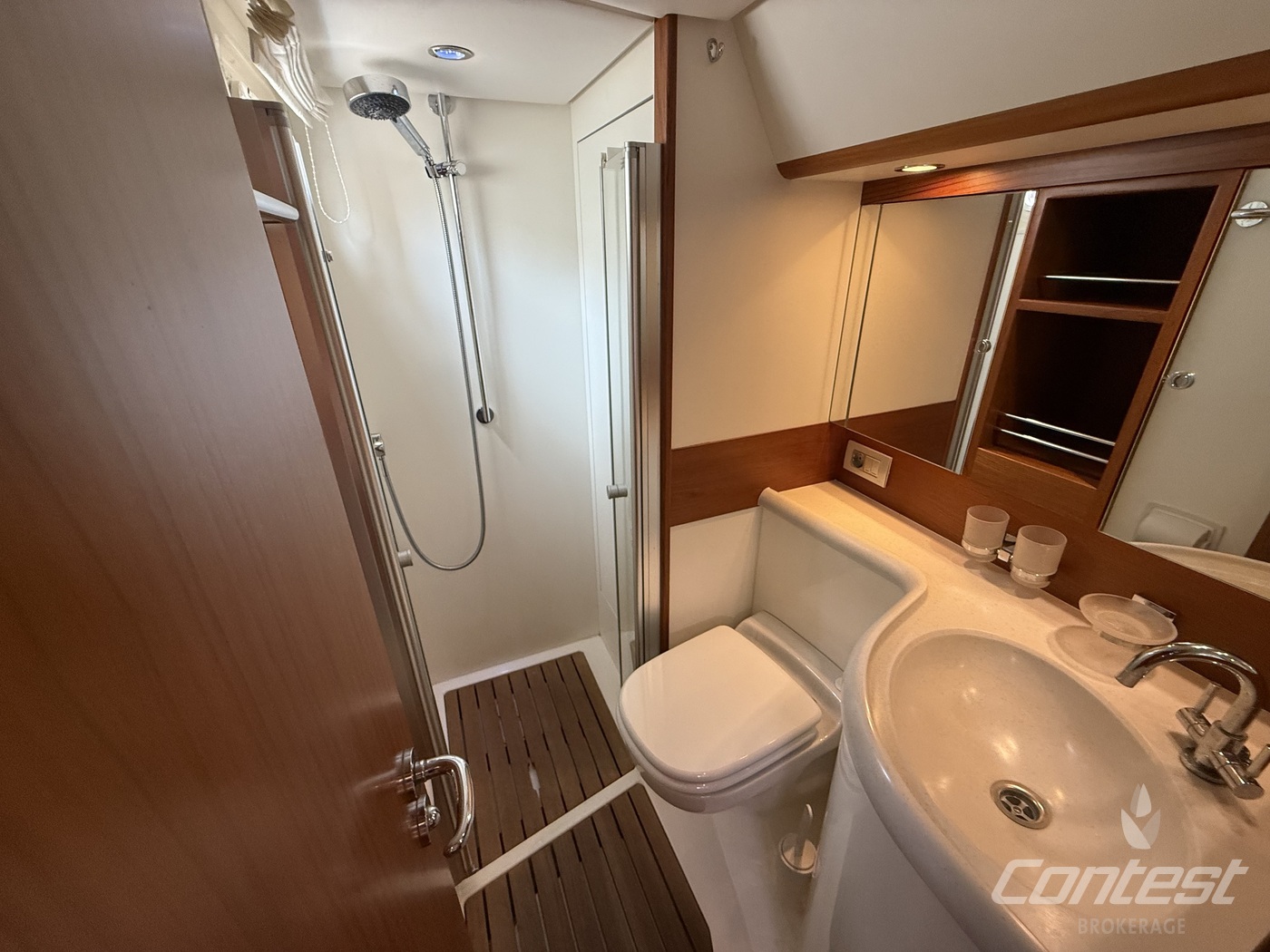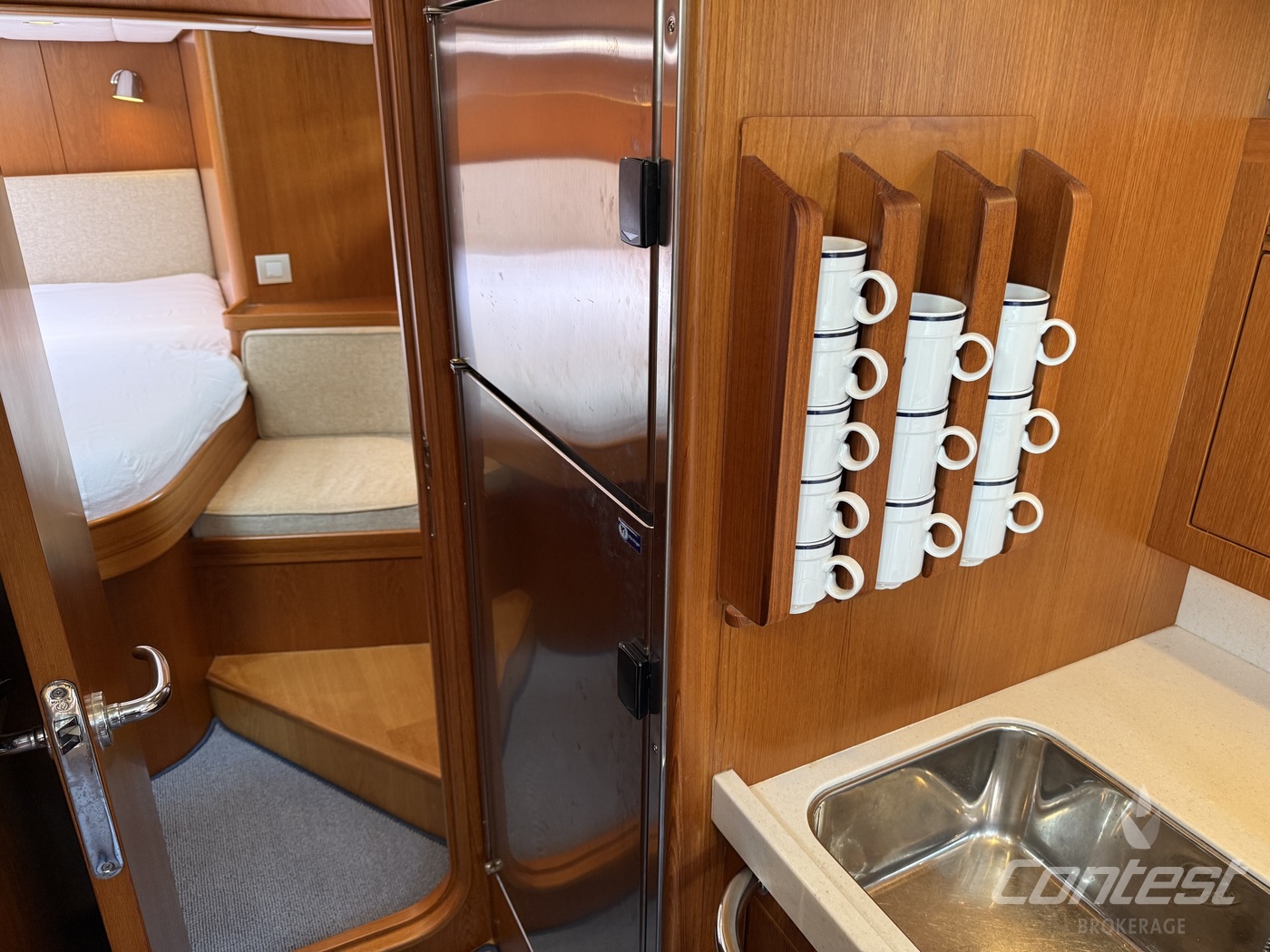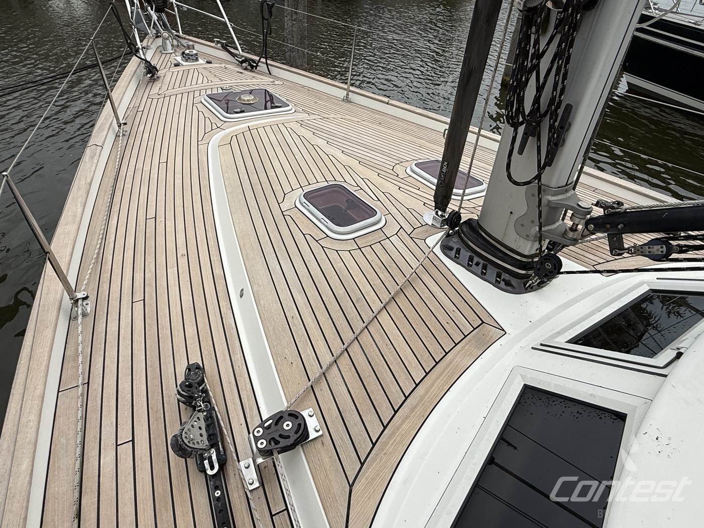Built to Contest Yachts high standards, she features an in-boom furling mainsail, teak interior with light grey upholstery, teak decks, generator, and carpeting throughout.