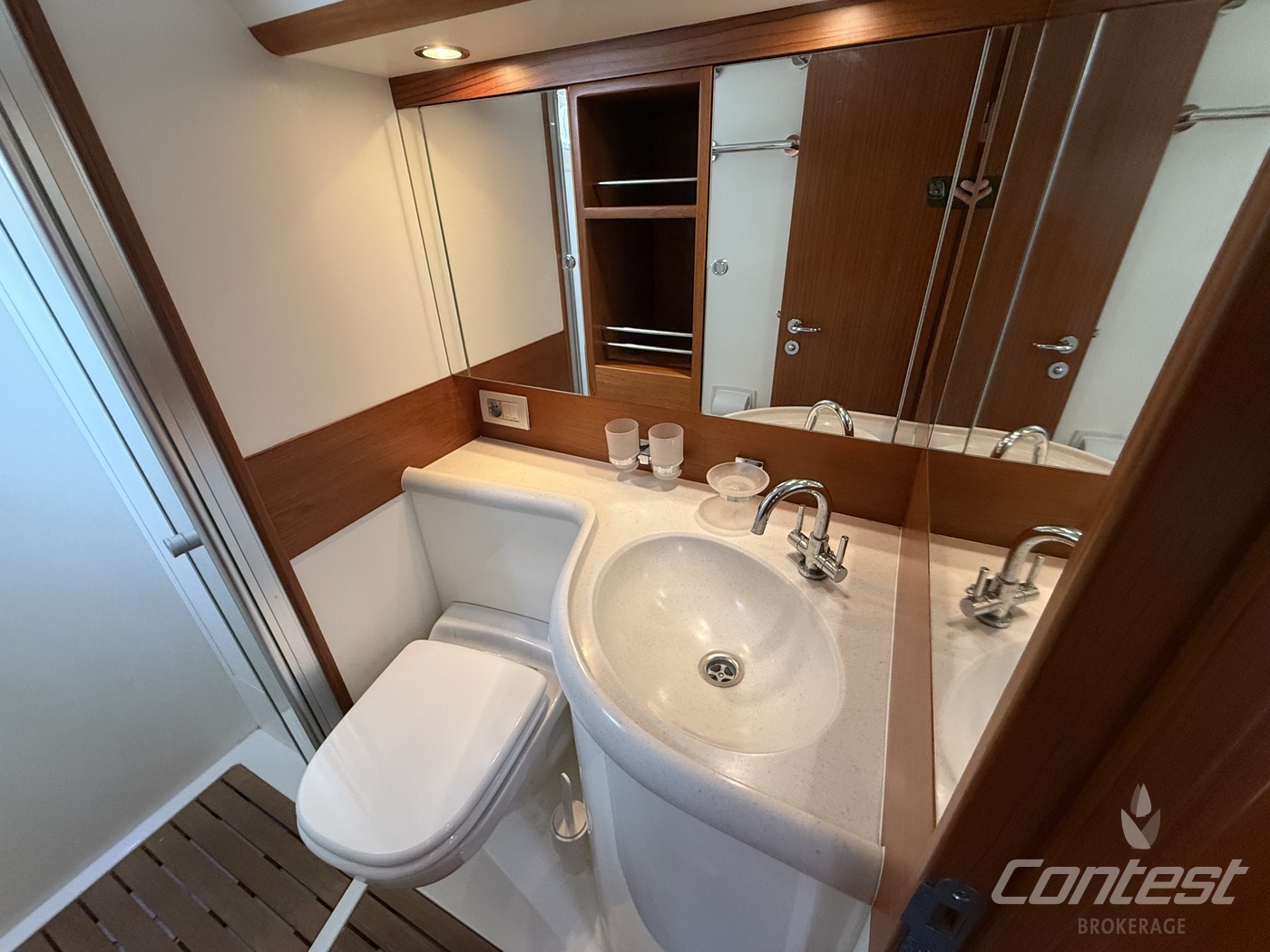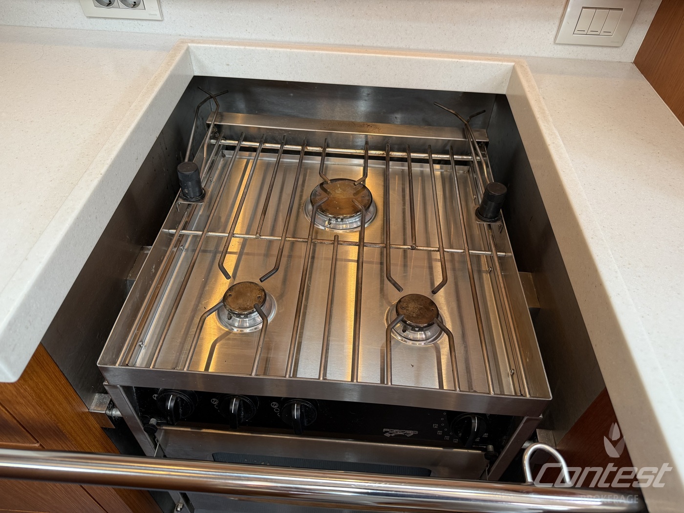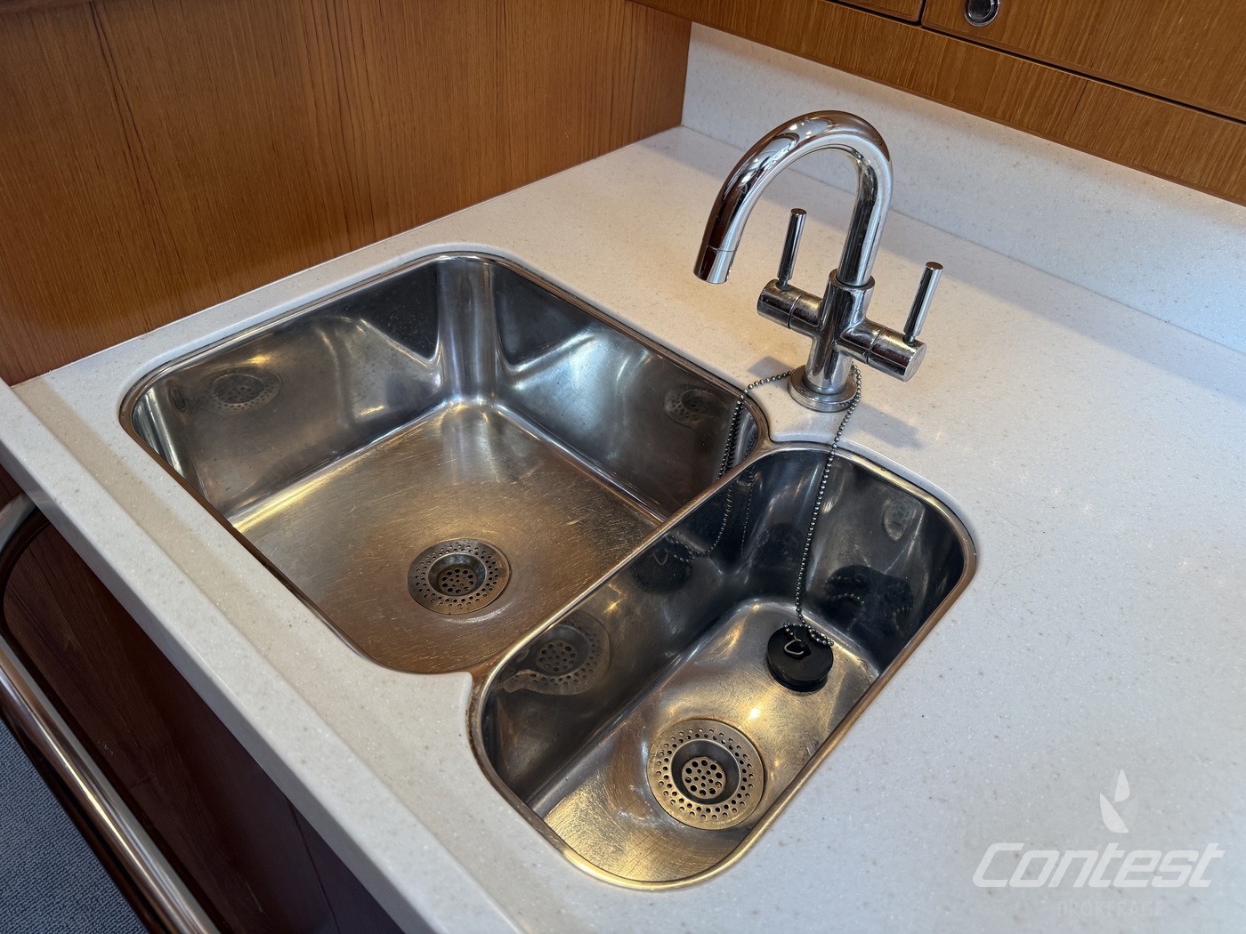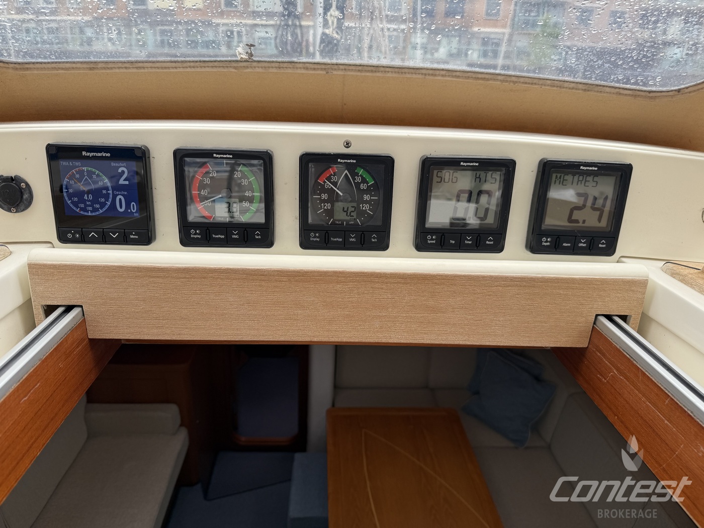 Built to Contest Yachts high standards, she features an in-boom furling mainsail, teak interior with light grey upholstery, teak decks, generator, and carpeting throughout.