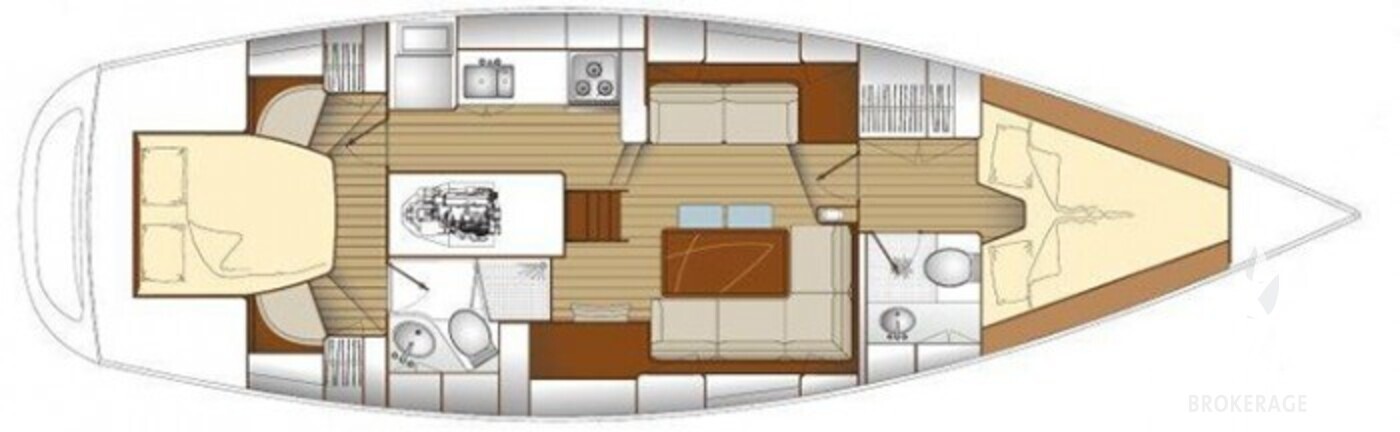 CabinsRuime eigenaarshut in het achterschip en gastenhut in de boeg