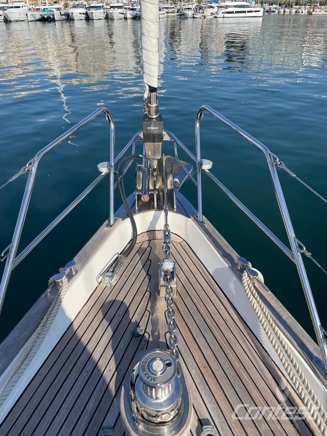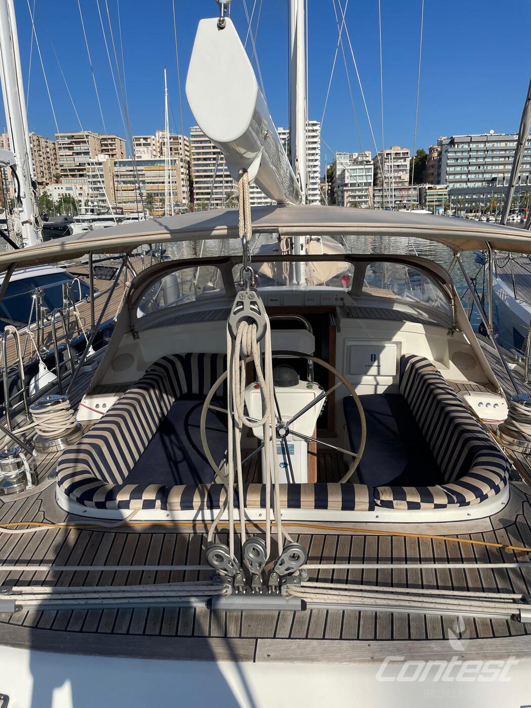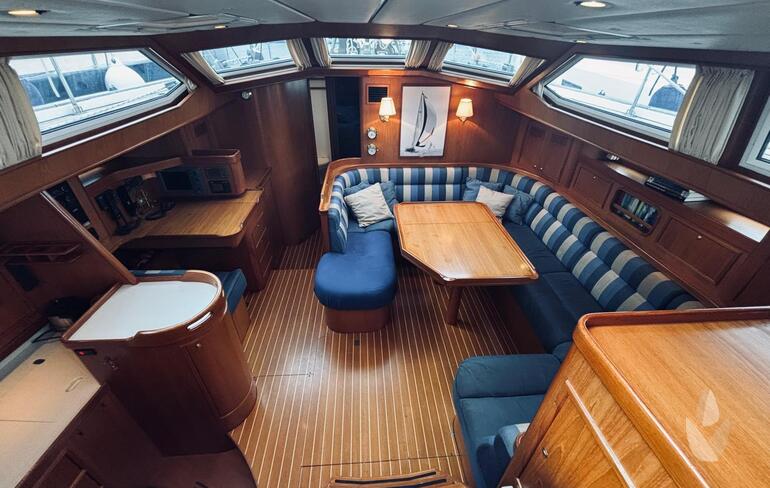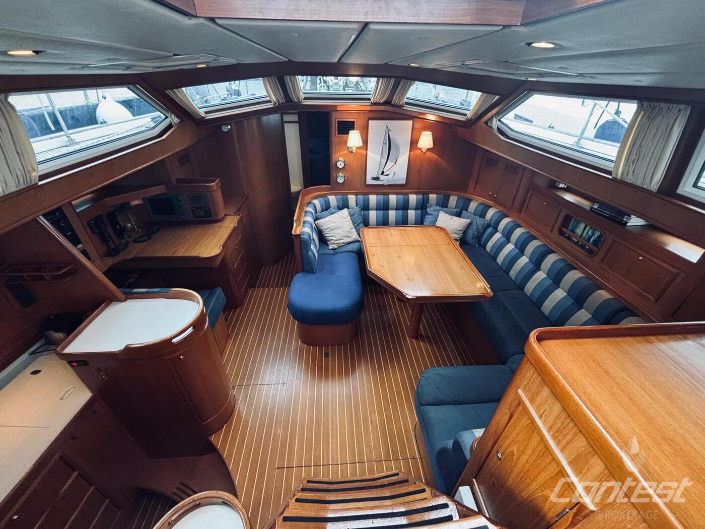 Her fully hydraulic sail handling with Reckmann furlers and a powerful 20 hp bow thruster make her easy to sail shorthanded from the cockpit. Designed for comfortable cruising, she combines a practical interior layout with a sheltered, well-thought-out cockpit.