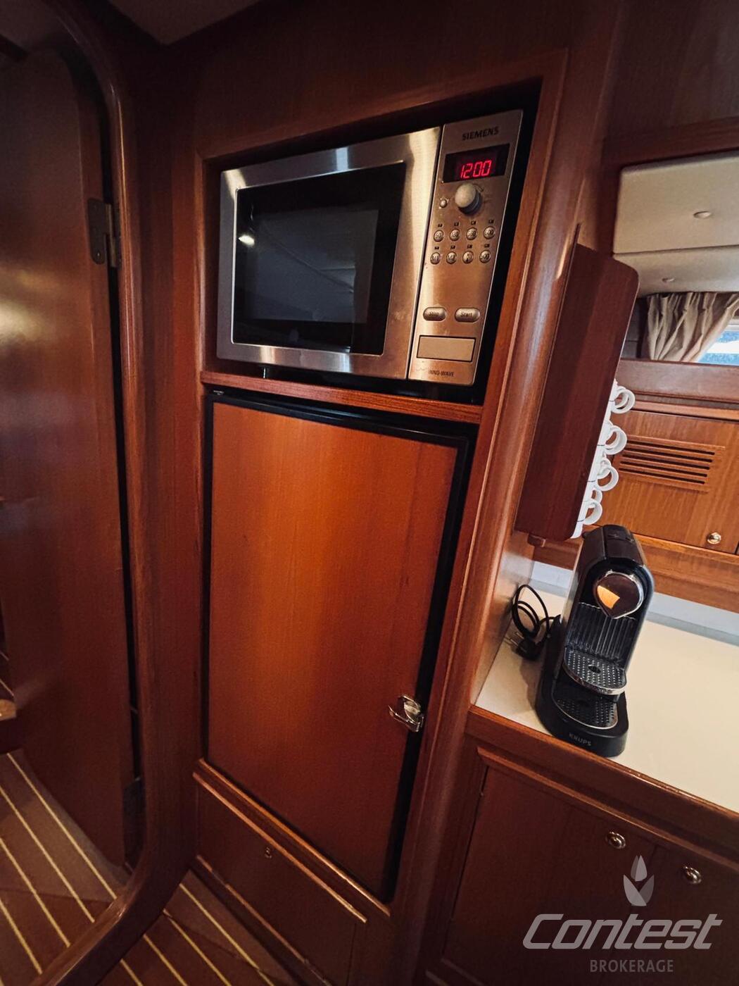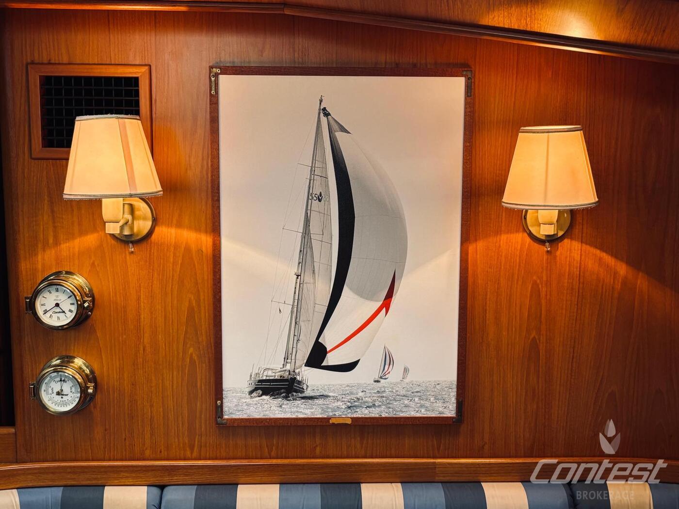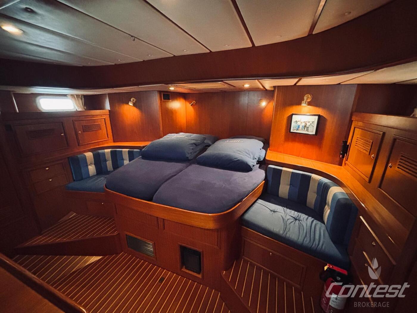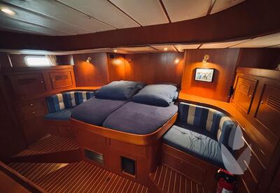 Her fully hydraulic sail handling with Reckmann furlers and a powerful 20 hp bow thruster make her easy to sail shorthanded from the cockpit. Designed for comfortable cruising, she combines a practical interior layout with a sheltered, well-thought-out cockpit.