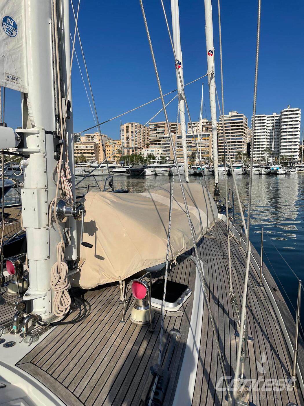 "Amati" is offered for sale by her second owner, who has carefully maintained her since 2007. Recent (2025) upgrades include a new genoa and cutter jib by Ullman, a new stay for the cutter jib, an overhauled generator, re-isolated engine room and a full check of all thru-hulls with renewed antifouling.