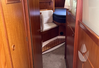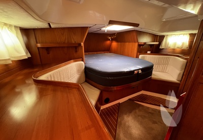 Thanks to her comfortable sailing performance and high equipment level, she can easily be handled by two people or even sailed single-handed. Her warm teak interior offers a spacious and inviting atmosphere, providing accommodation for four in two cabins and two additional berths in the saloon.