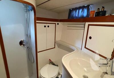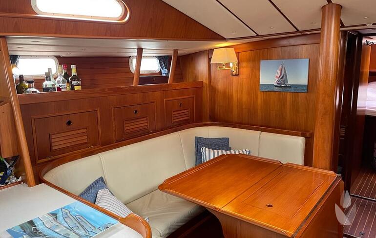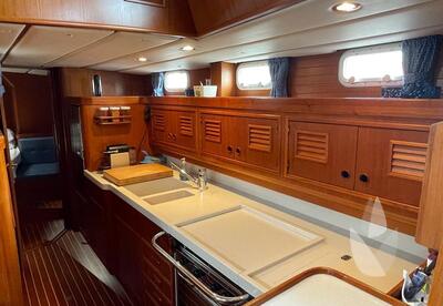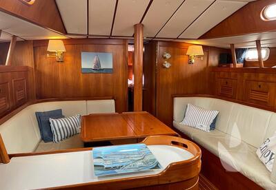 Thanks to her spacious interior layout, featuring three cabins and a generous head compartment, she offers comfortable accommodation for up to six persons. Well balanced and thoughtfully designed, she is easily sailed single-handed from the cockpit, making her suitable for both short-handed sailing and extended voyages.